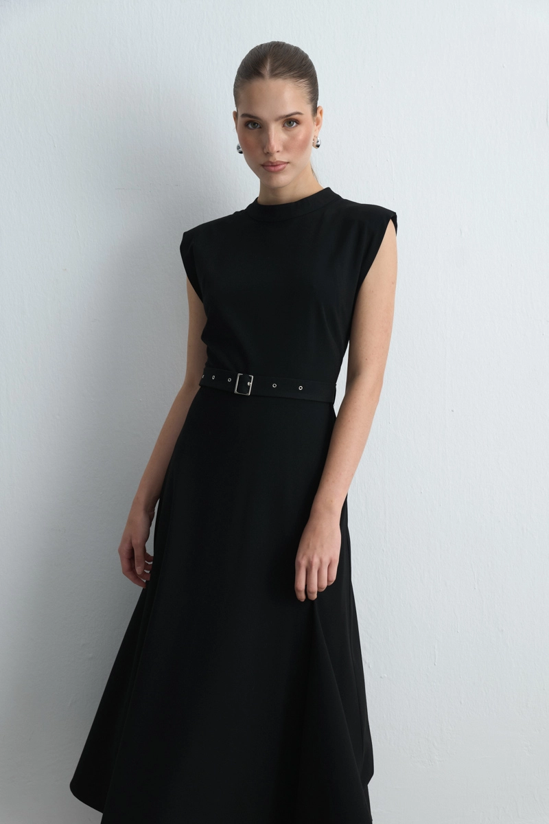 Kemer detayı feminen bir siluet oluşturur. Siyah tonu zarif ve zamansız bir şıklık sunar. Uzun formu hem gündüz hem akşam kombinlerine uygundur. Özel davetlerde zarif bir seçenek oluşturur.
