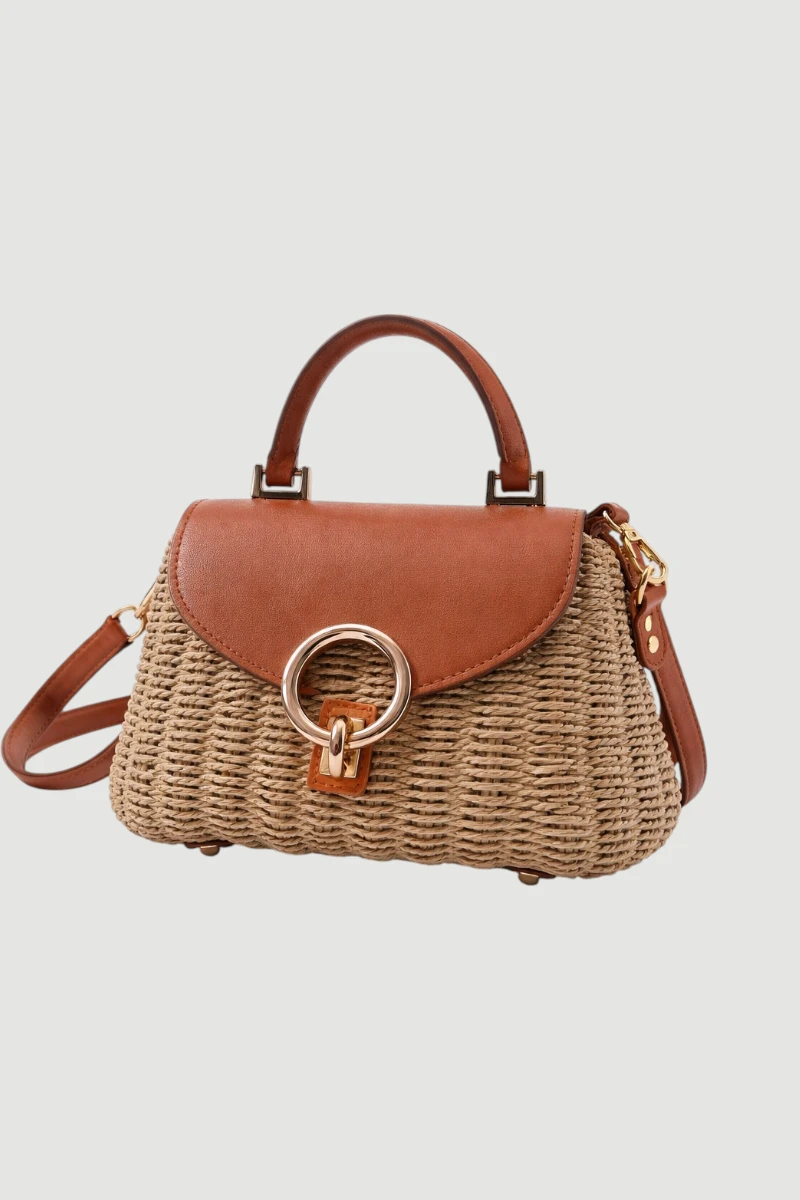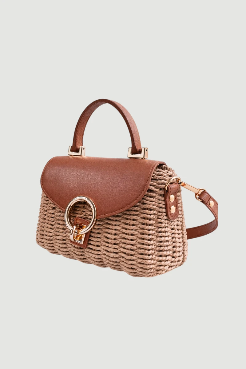 Zarif kilit detayıyla şıklığı ön plana çıkaran bu tasarım, sade kombinlere karakter kazandırır. Hasır dokusu sayesinde hafif ve doğal bir kullanım sunar. Bej tonlarıyla yaz stiline uyum sağlar. Günlük ve şık kombinlerde rahatlıkla tercih edilebilir. Zamansız tasarımıyla uzun süre kullanılabilir.