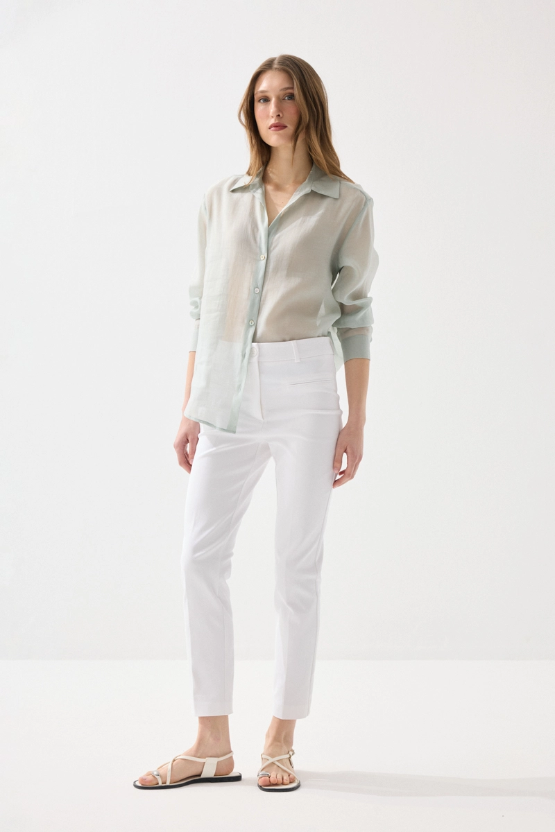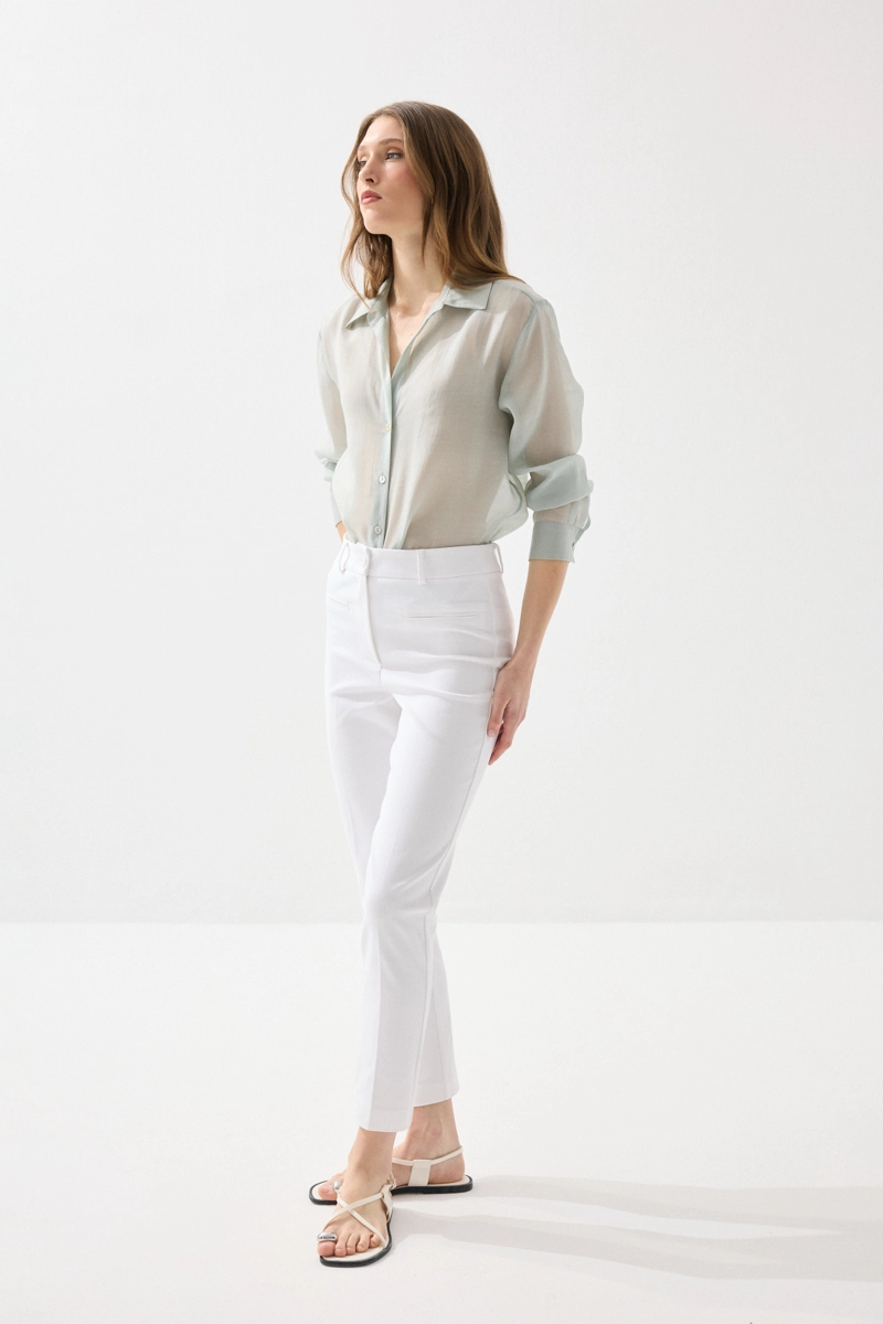 Çeşitli ölçülerdeki mankenler üzerinde denenmiş, özel kalıbı ve özel kumaşı ile üretilmiş bu “Sihirli Pantolon” sizi bir beden zayıf göstermekle kalmıyor aynı zamanda şıklığı elden bırakmanıza da izin vermiyor. 34 - 48 beden aralığında sunulan bu özel pantolonlar, vücudu ideal şekilde saracak formda tasarlanmıştır. Hiçbir tadilata gerek kalmadan pantolonunuzu giyebilir ve özgürce gezebilirsiniz. Aynı zamanda “Sihirli Pantolon” renk skalası her zevke hitap etmeyi başarıyor. Capcanlı bluzlar ile kombin yapabileceğiniz gibi davetlere katılırken seçeceğiniz şık gömlekler ile giyebileceğiniz bu pantolonlar ile her ortamda akılda kalmak mümkün.