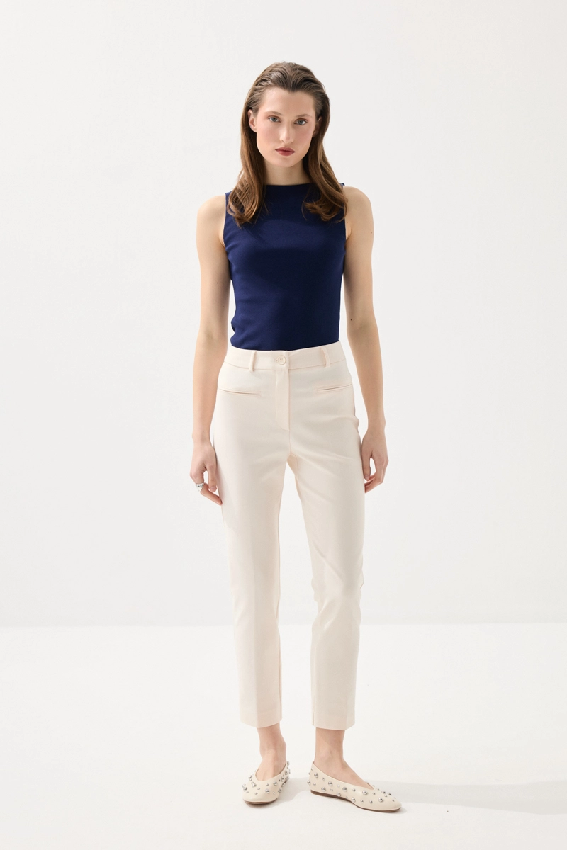 Esnek yapısı sayesinde gün boyu konforlu bir kullanım sunar. Vücuda uyum sağlayan kesimi zarif ve dengeli bir siluet oluşturur. Günlük stilin yanı sıra ofis kombinlerinde de tercih edilebilecek zamansız bir parçadır. Farklı üstlerle kolayca kombinlenebilir. Sade ve modern duruşuyla gardırobun vazgeçilmezleri arasında yer alır.