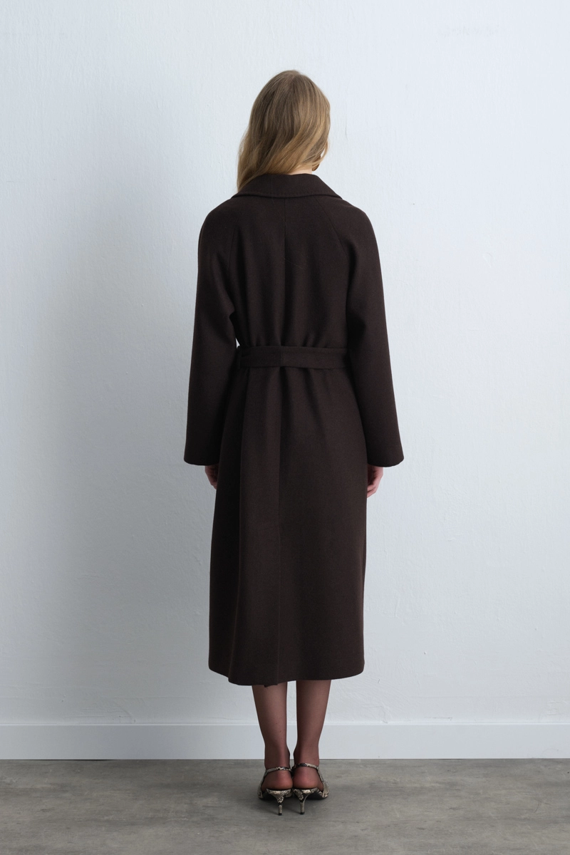 This classic wool coat, the epitome of timeless elegance, offers a sophisticated look in a warm shade of brown. The wool texture keeps you warm in cold weather, while its modern cut fits perfectly into both everyday and special ensembles. A true investment piece that will retain its value in your wardrobe for years.