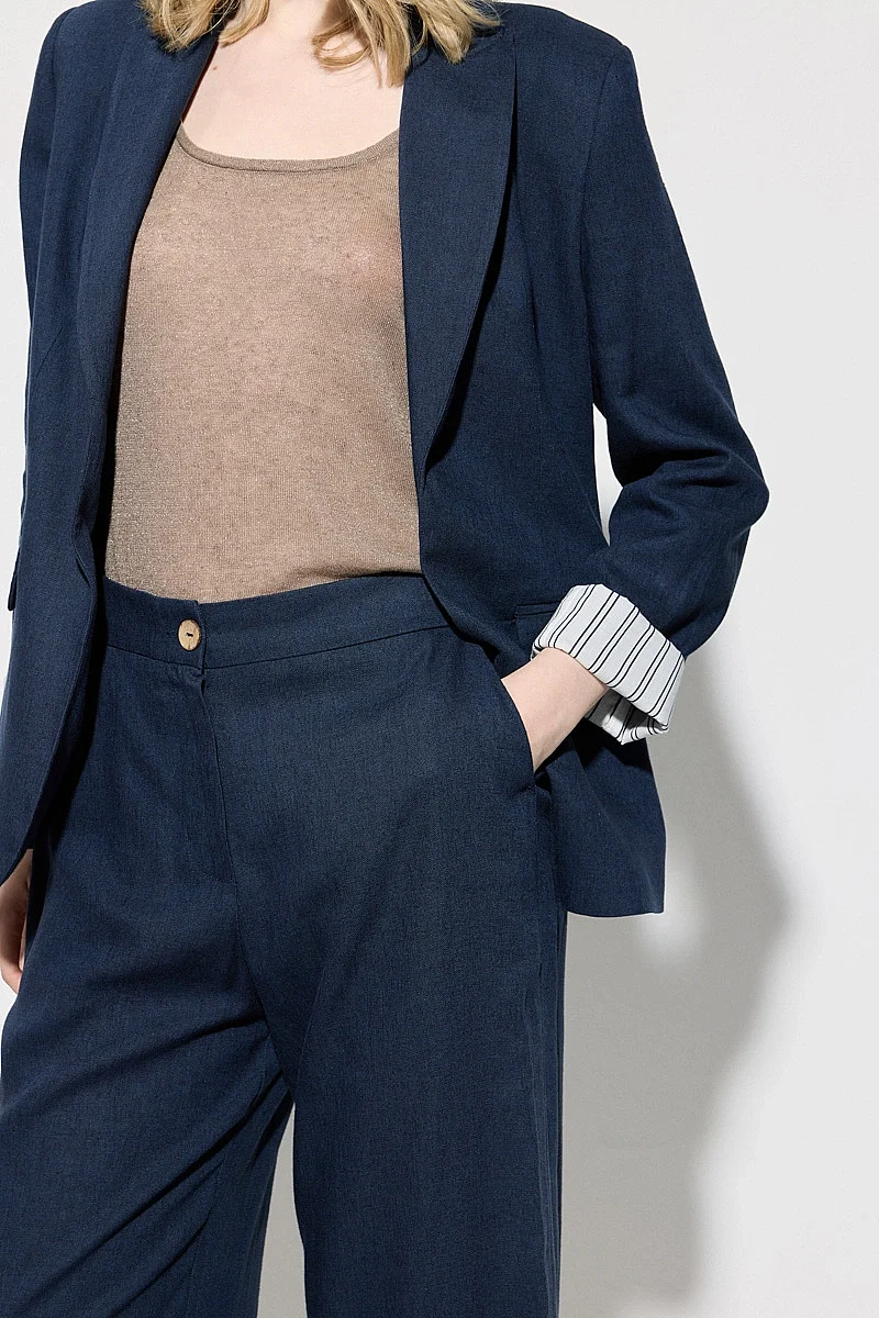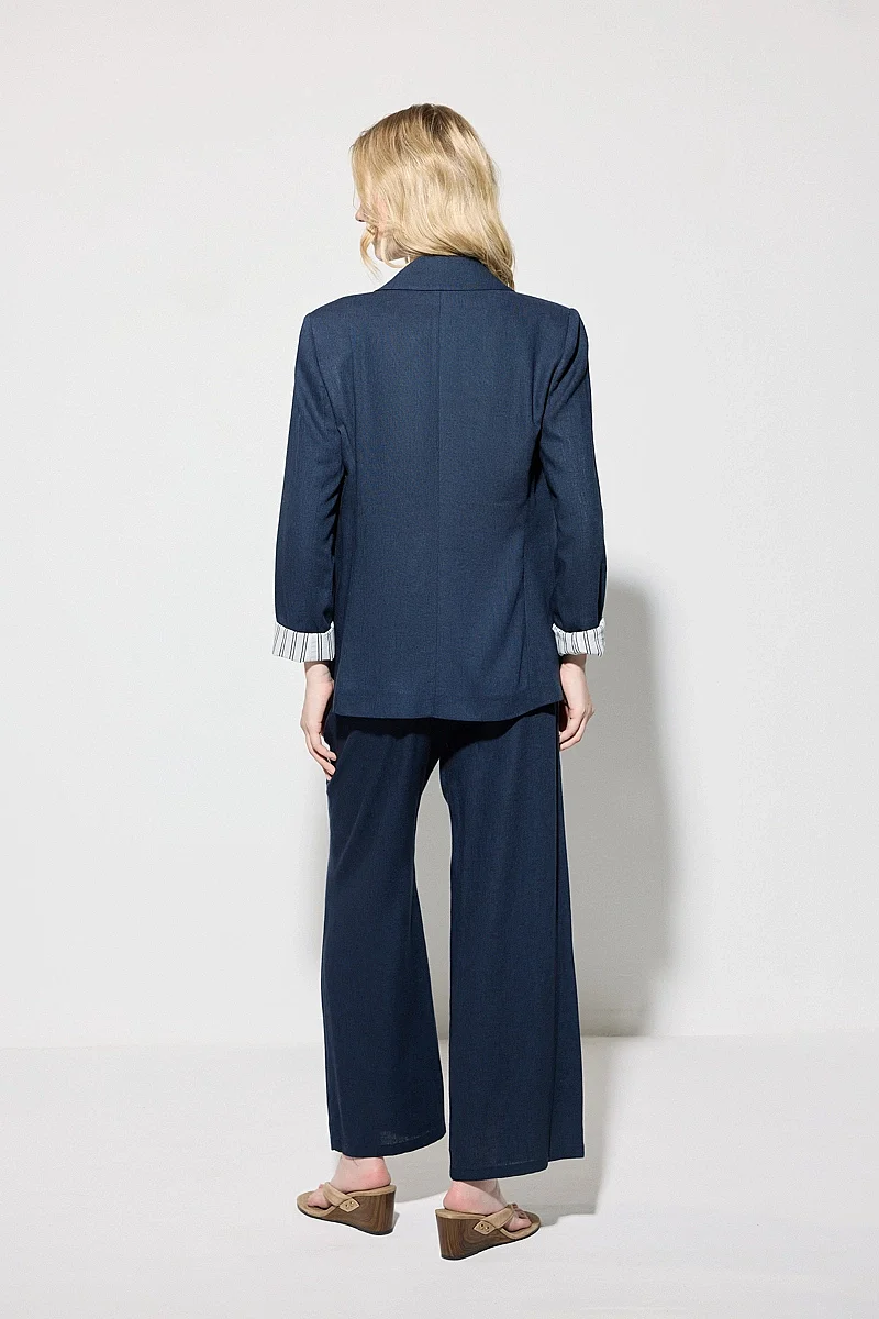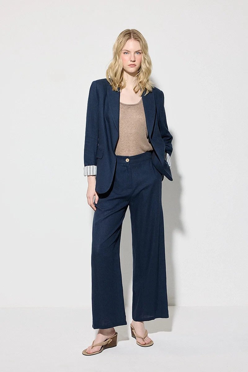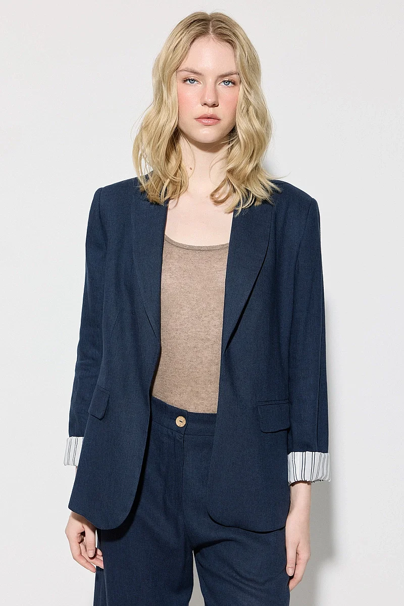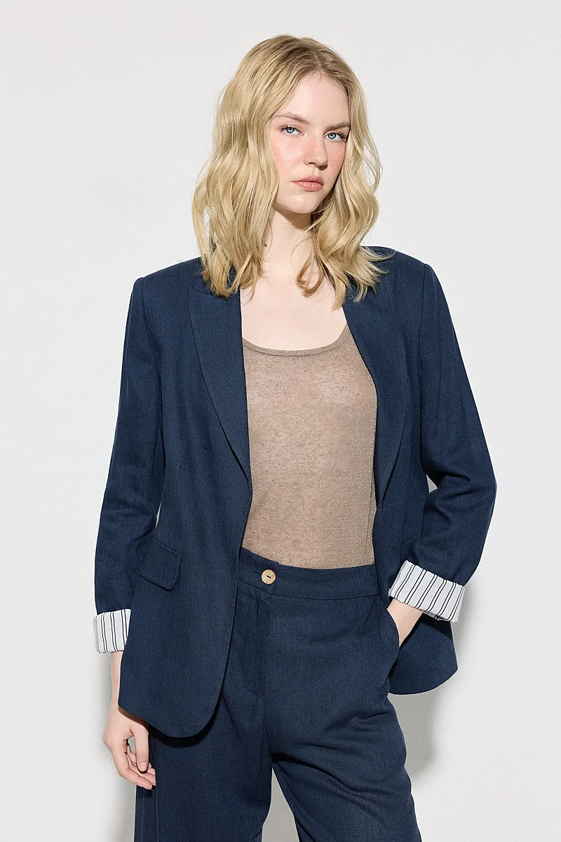 Katlanabilir kol detayıyla pratik ve modern bir kullanım sunar. Keten dokusu sayesinde hafif ve nefes alabilen bir yapı sağlar. Lacivert tonu ile şık ve dengeli bir görünüm oluşturur. Rahat kesimi ile gün boyu konfor sunar. Günlük kombinlerde ideal bir tamamlayıcıdır.