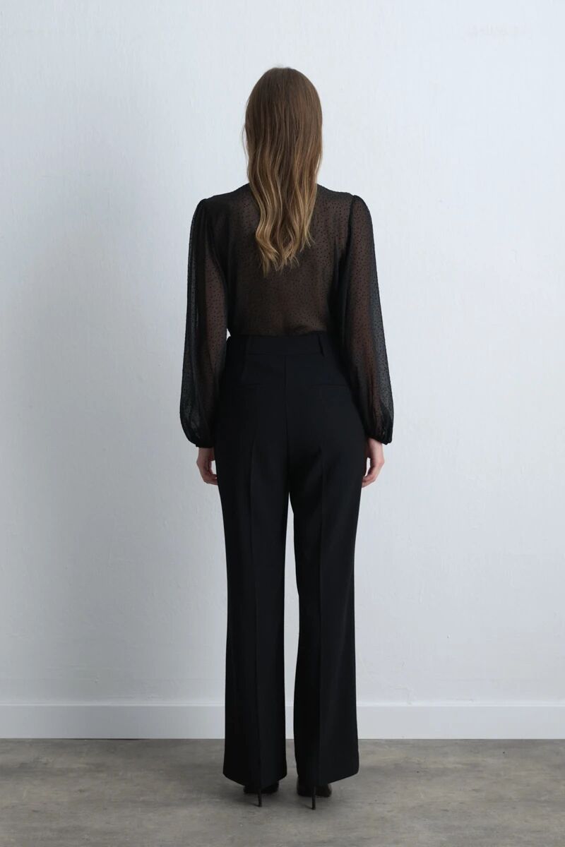 Bol Paça Krep Pantolon - Siyah