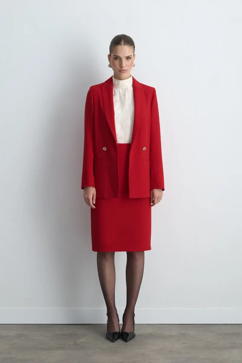 Krep Blazer Ceket & Kalem Etek - Kırmızı Takım