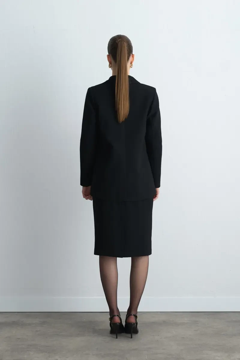 The Black Tone Offers Timeless Elegance. Crepe Fabric Provides A Flowing And Elegant Look. Blazer Form Adds A Strong Presence. Suitable For Both Office Outfits And Special Occasions.