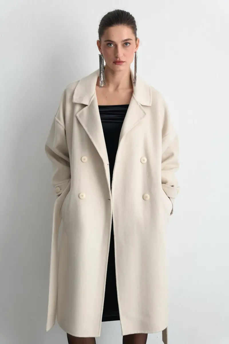 Ekru rengiyle sade ama çarpıcı bir duruş kazandırır. Yün kumaşı sıcak tutarken zarif bir görünüm sunar. Kruvaze kesimi klasik şıklığı modern bir çizgiyle harmanlar. Astarsız yapısı hafiflik ve rahatlık sağlar. Günlük kombinlerden özel buluşmalara kadar stil sahibi bir duruş oluşturur.