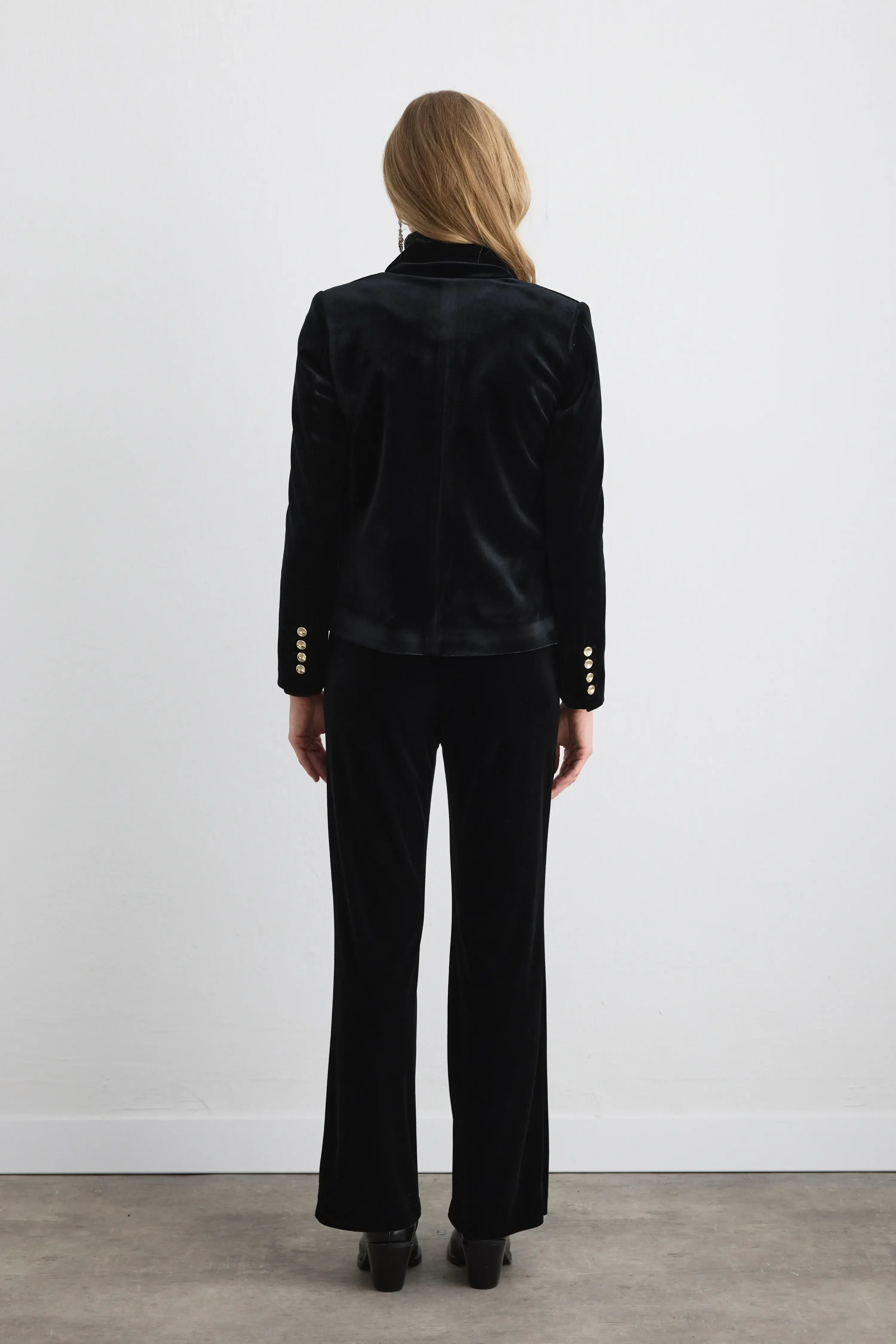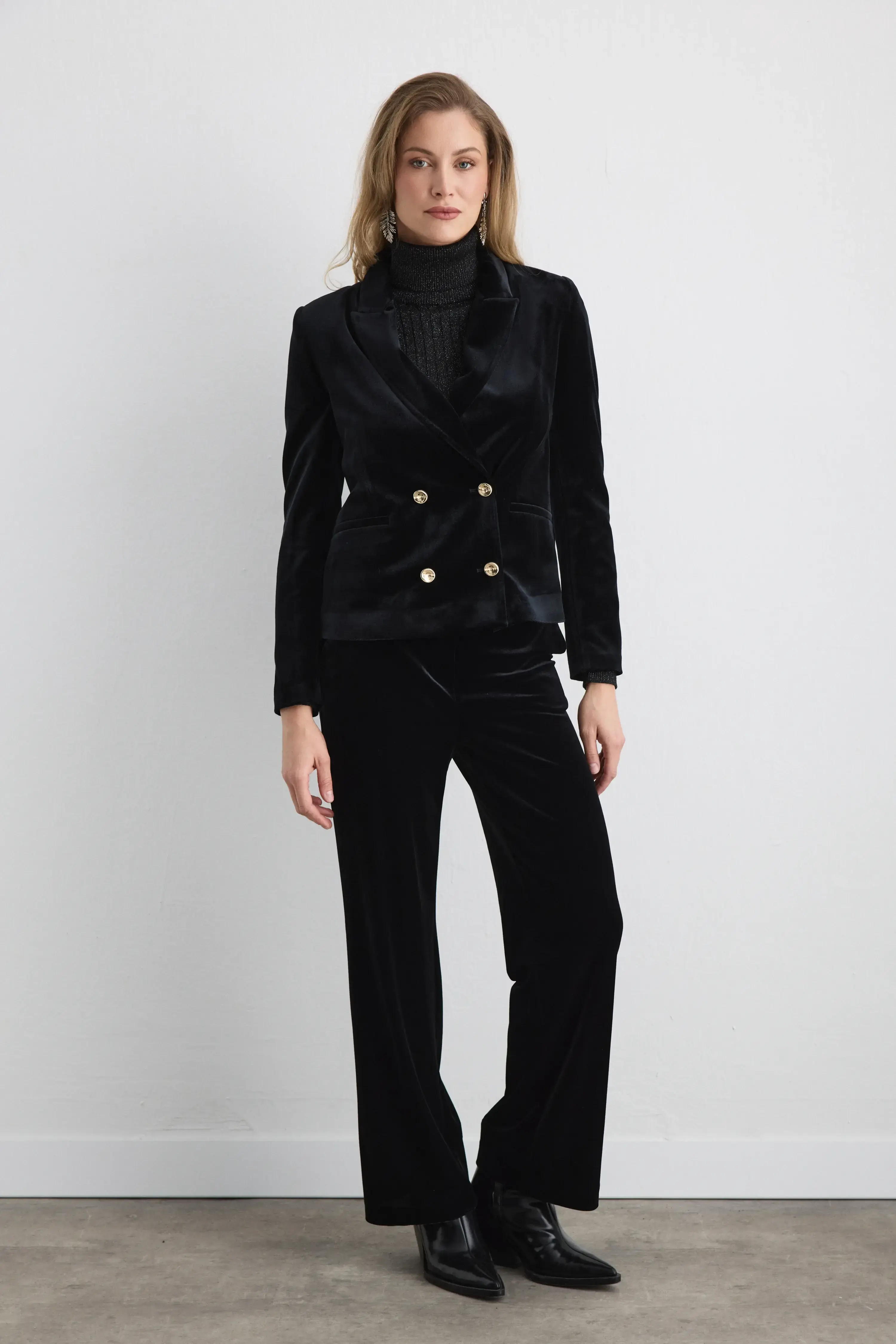 Kruvaze Kadife Ceket & Boru Paça Pantolon- Siyah Takım