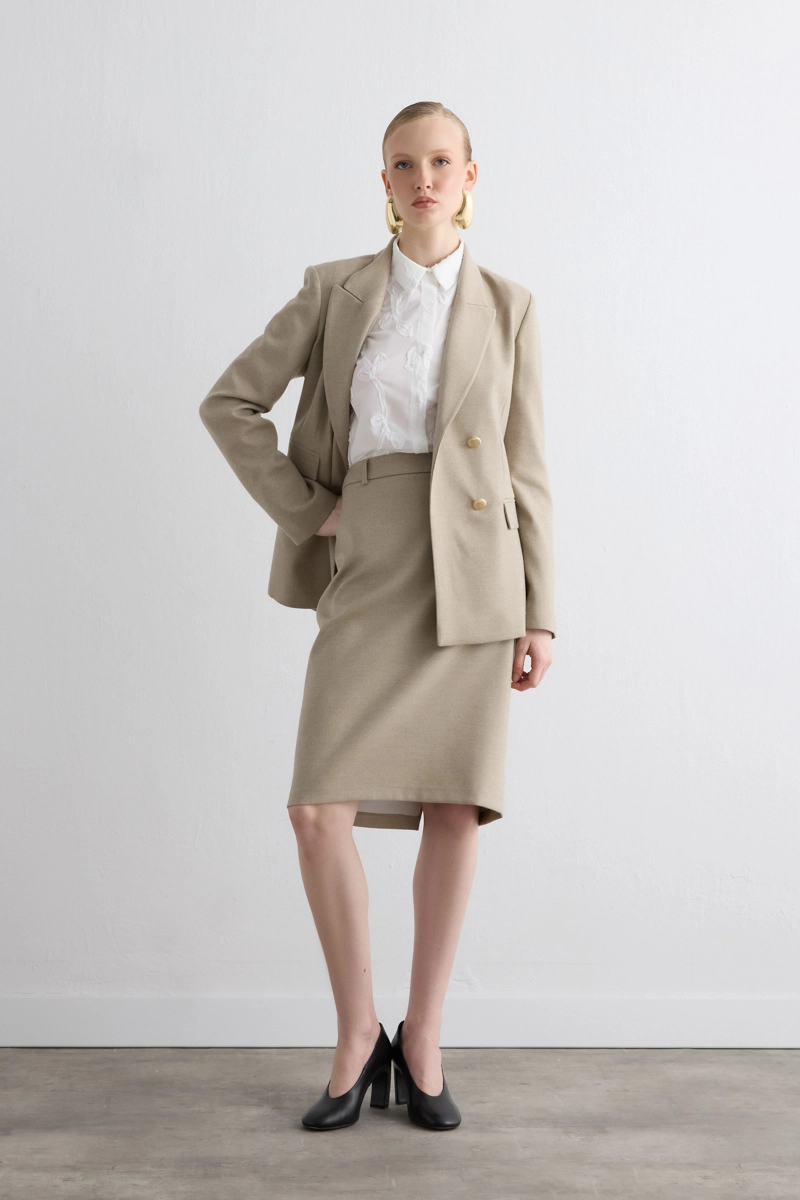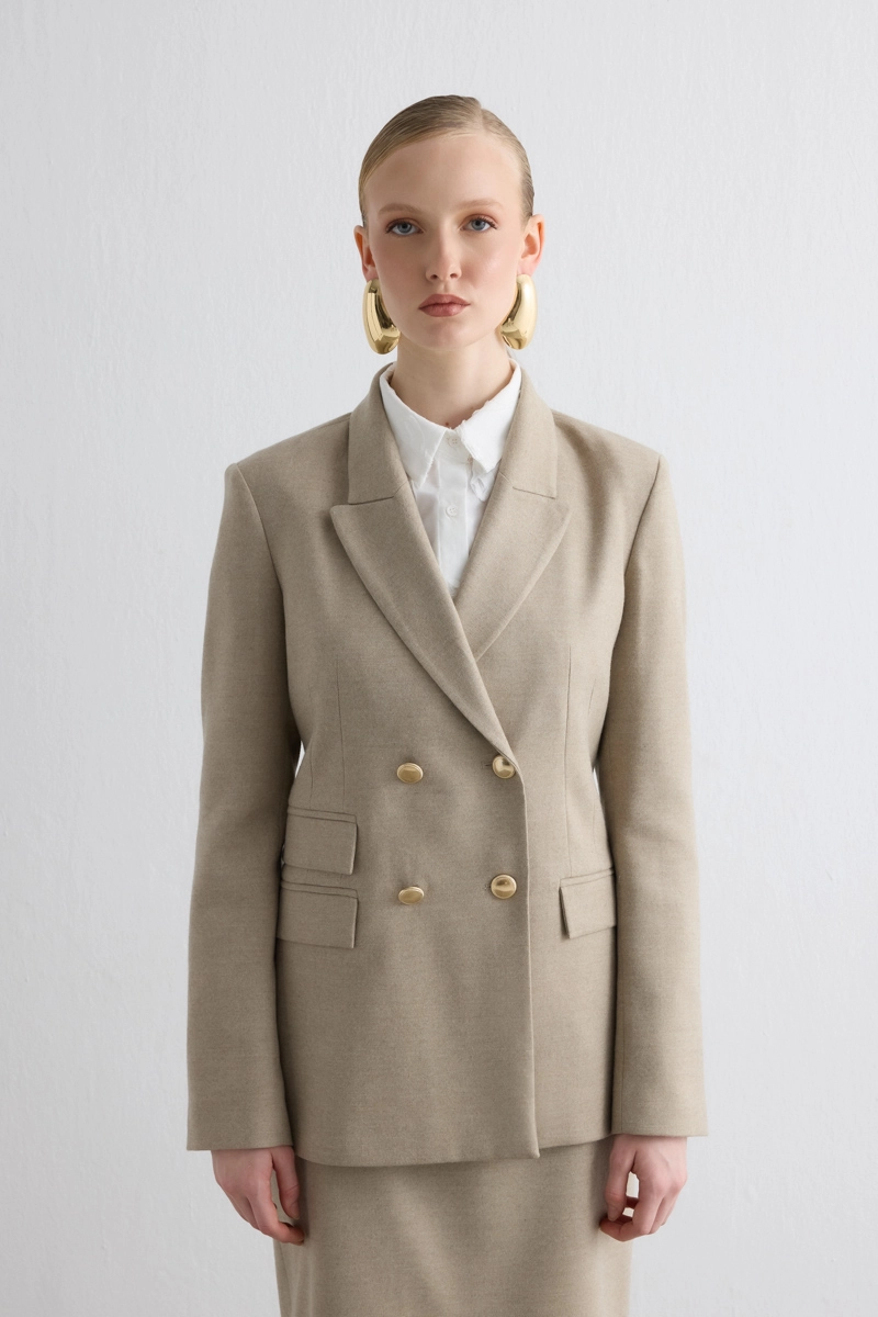 Zarif kruvaze detayıyla klasik bir duruş sergiler. Kaşe dokusu soğuk havalarda sıcaklık sağlar. Bej tonu, farklı renklerle kolayca kombinlenebilecek zamansız bir şıklık sunar. Rahat kalıbı sayesinde hem ofis hem günlük kullanım için idealdir. Modern çizgileriyle stilinizi kusursuzca tamamlar.