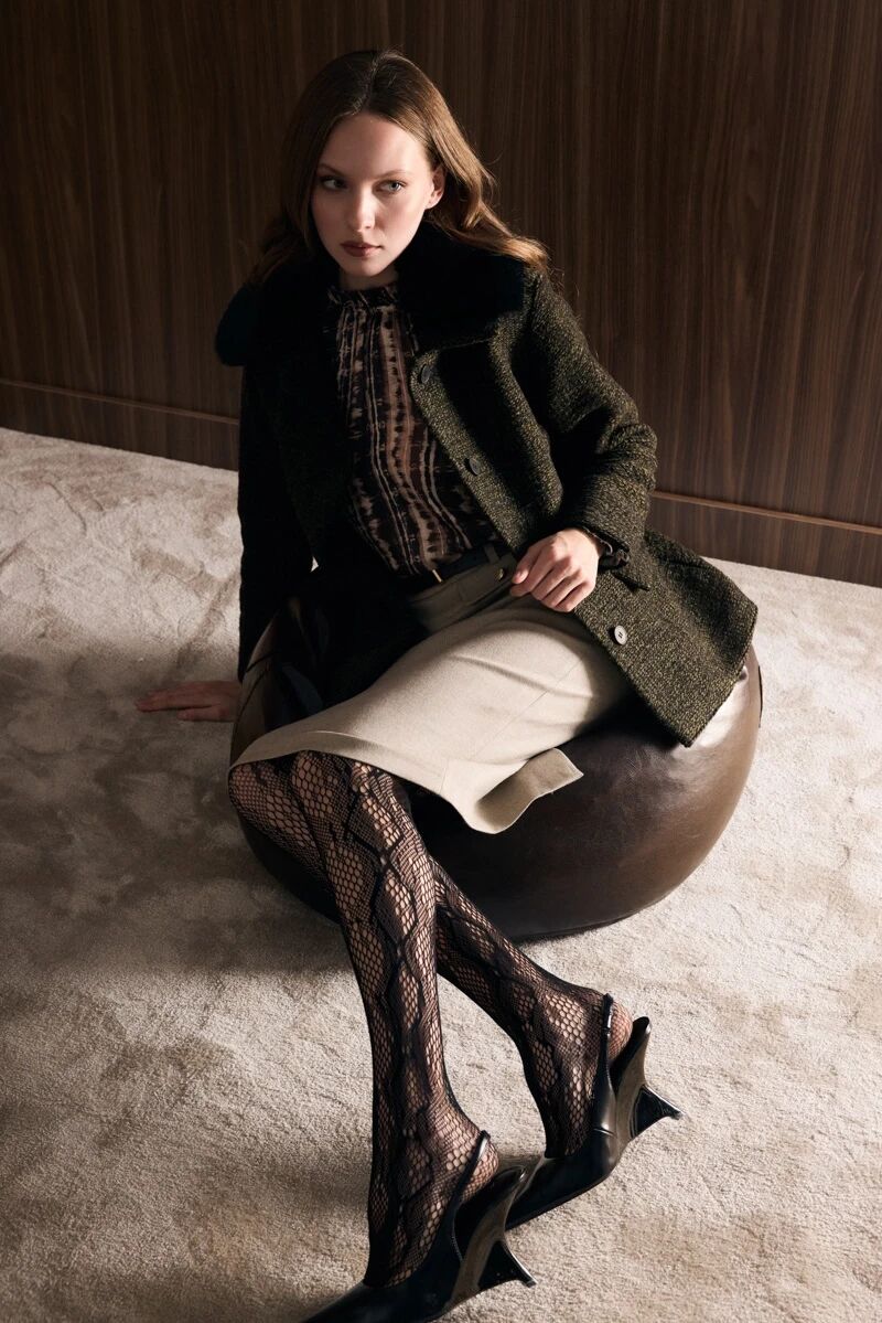 Kürk Yakalı Yün Ceket & Kaşe Kalem Etek Kombini