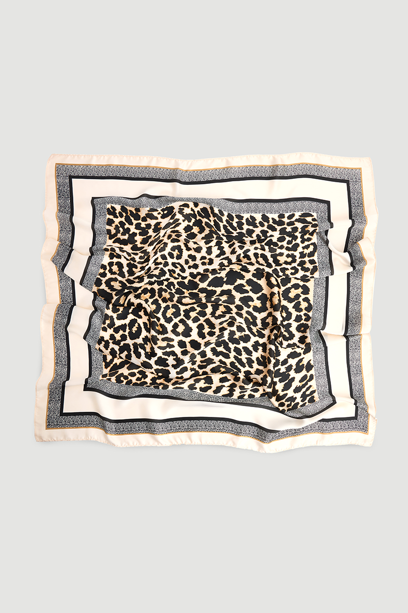 Leopar deseni iddialı ve dikkat çekici bir stil yaratıyor. Bej tonları sıcak ve sofistike bir görünüm sunuyor. Büyük boyut kombinlerde stilin odak noktası oluyor. Hafif ve akıcı dokusu rahat bir kullanım sağlıyor. Günlük veya özel kombinlerde şıklık katıyor. Modern ve eğlenceli bir aksesuar alternatifi sunuyor.