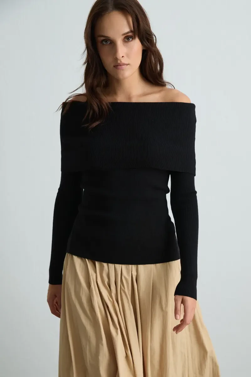 Feminen duruşuyla dikkat çeken madonna yaka triko bluz, omuz detaylarıyla zarif bir siluet oluşturur. Yumuşak ve esnek triko kumaşı, vücuda oturarak şık bir görünüm kazandırır. Akşam davetlerinden günlük stilinize kadar her ortama uyum sağlar.