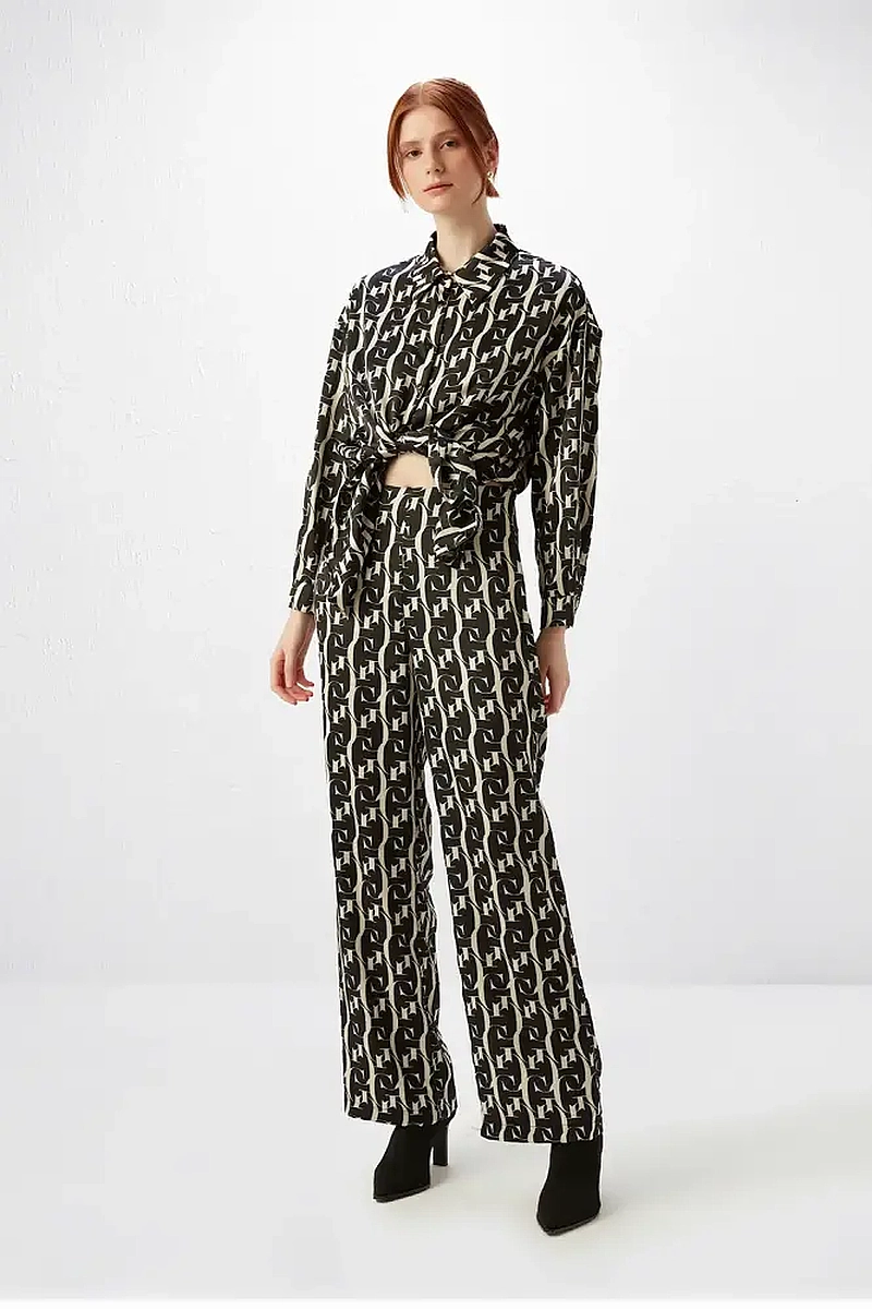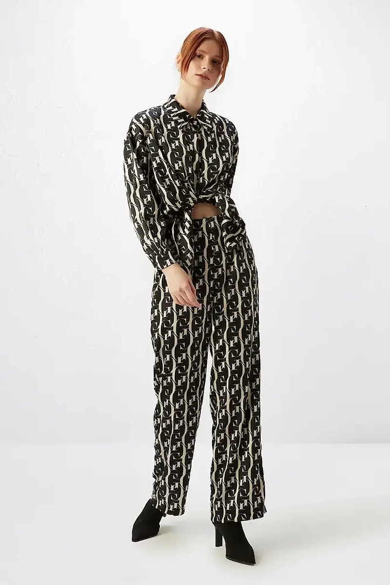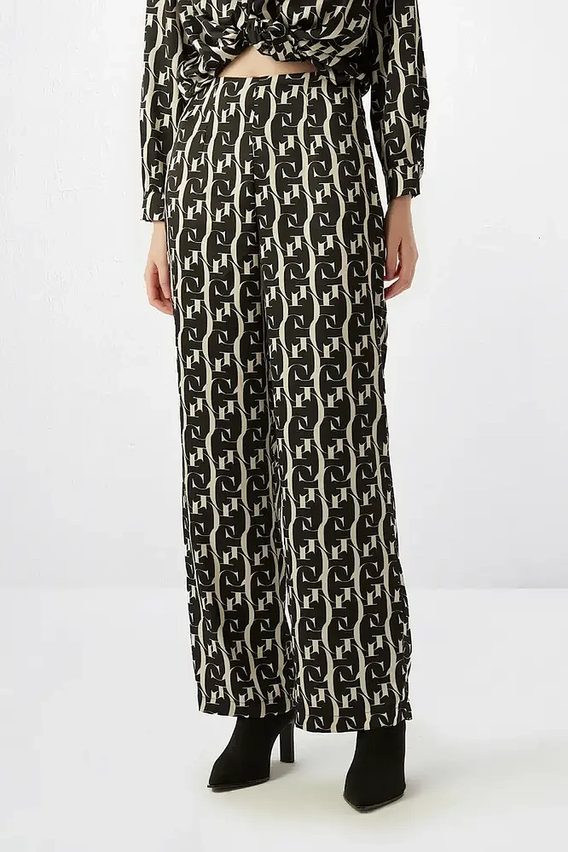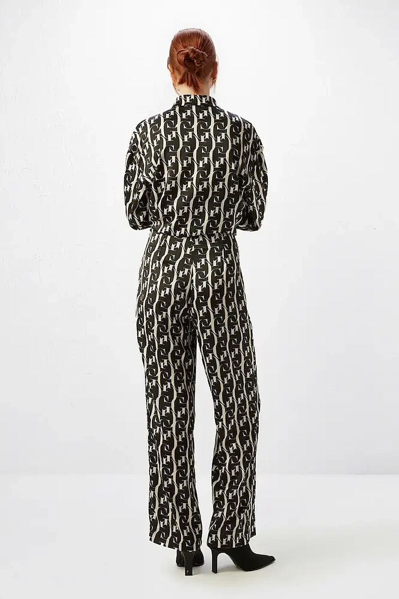 Zarif monogram deseni ve saten dokusuyla öne çıkan bu pantolon, şık ve modern bir görünüm sunar. Ekru tonunun sade ve sofistike duruşu, farklı üst giyim parçalarıyla kolayca kombinlenebilir. Hafif ve akıcı kumaşı sayesinde gün boyu konfor sağlar. Hem günlük stilinizde hem de özel davetlerde rahatlıkla tercih edebileceğiniz şık bir parçadır.