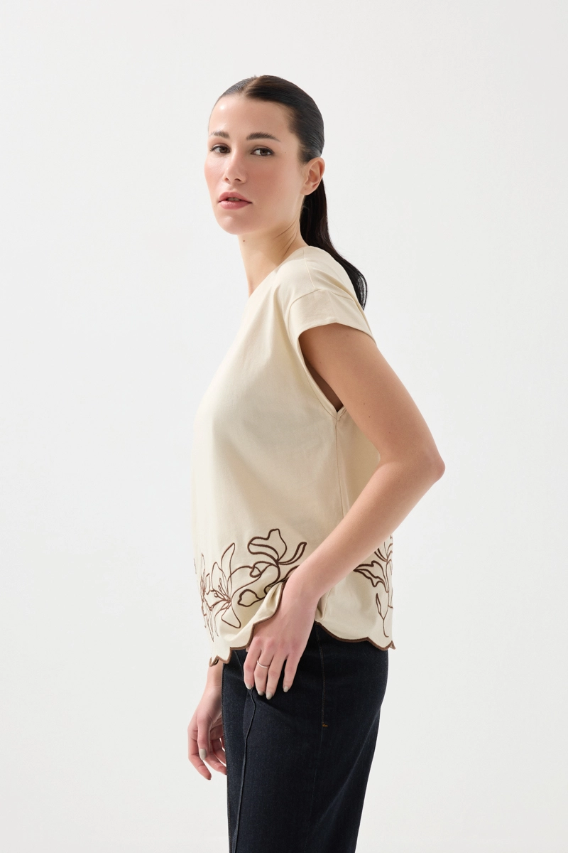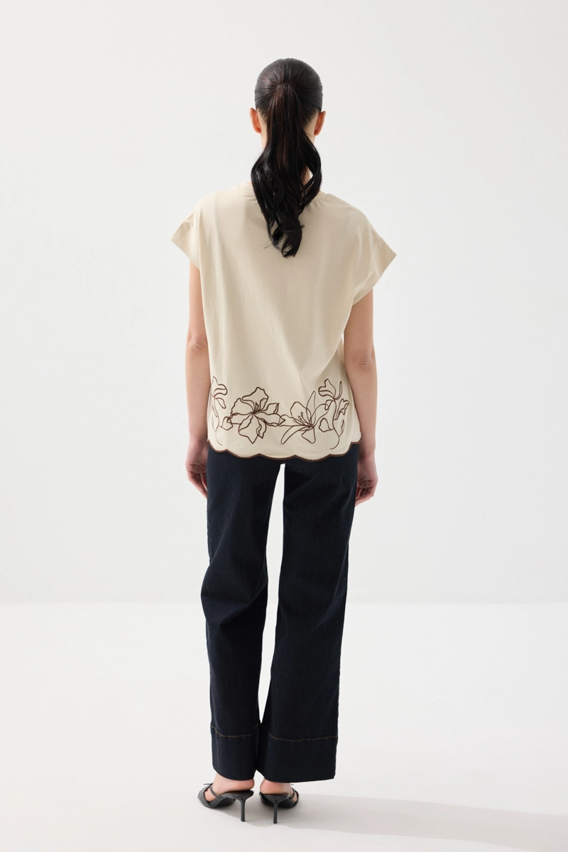 Zarif nakış detaylarıyla sade tasarımı zenginleştirir. Pamuklu yapısı sayesinde konforlu bir kullanım sunar. Düşük kol kesimi ile rahat bir stil oluşturur. Taş rengi tonu ile doğal ve şık bir görünüm sağlar. Günlük kombinler için ideal bir tamamlayıcıdır.
