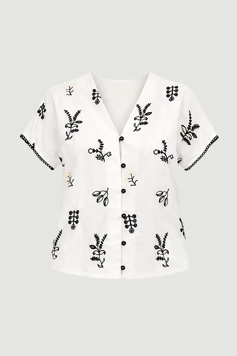 Zarif nakış detaylarıyla zenginleşen tasarımı, sade ve feminen bir görünüm sunar. Doğal keten dokusu sayesinde hafif ve nefes alabilen bir yapı sağlar. Gün boyu konfor sunan rahat formu farklı parçalarla kolayca kombinlenebilir. Günlük stilin yanı sıra yaz kombinlerinde de şık bir alternatif oluşturur. Zamansız tasarımıyla gardırobun zarif parçalarından biri olur.
