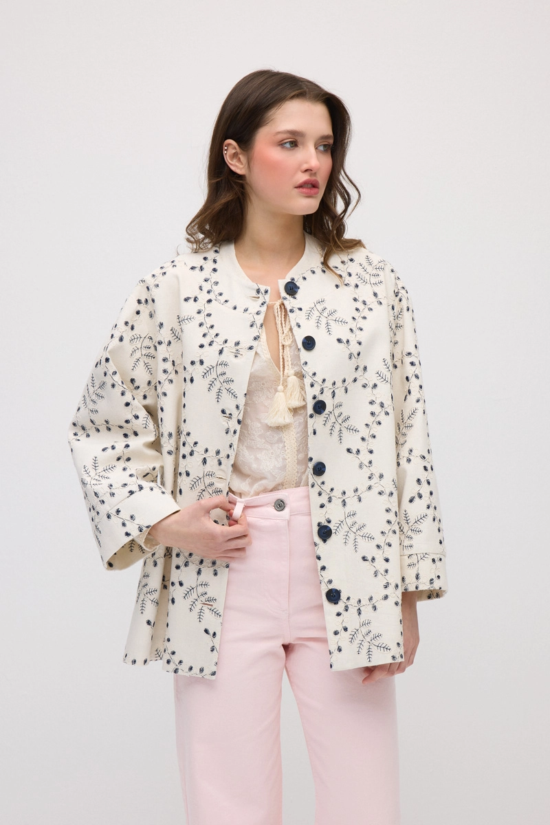 İnce nakış detaylarıyla zenginleşen kaftan tasarımı, zarif ve rahat bir görünüm sunar. Hafif pamuklu dokusu sayesinde gün boyu ferah bir kullanım sağlar. Akıcı ve rahat kesimi hareket özgürlüğü sunarken stil sahibi bir duruş kazandırır. Günlük stilin yanı sıra tatil kombinlerinde de tercih edilebilecek şık bir alternatiftir. Zamansız ve doğal görünümüyle gardırobun dikkat çeken parçalarından biridir.