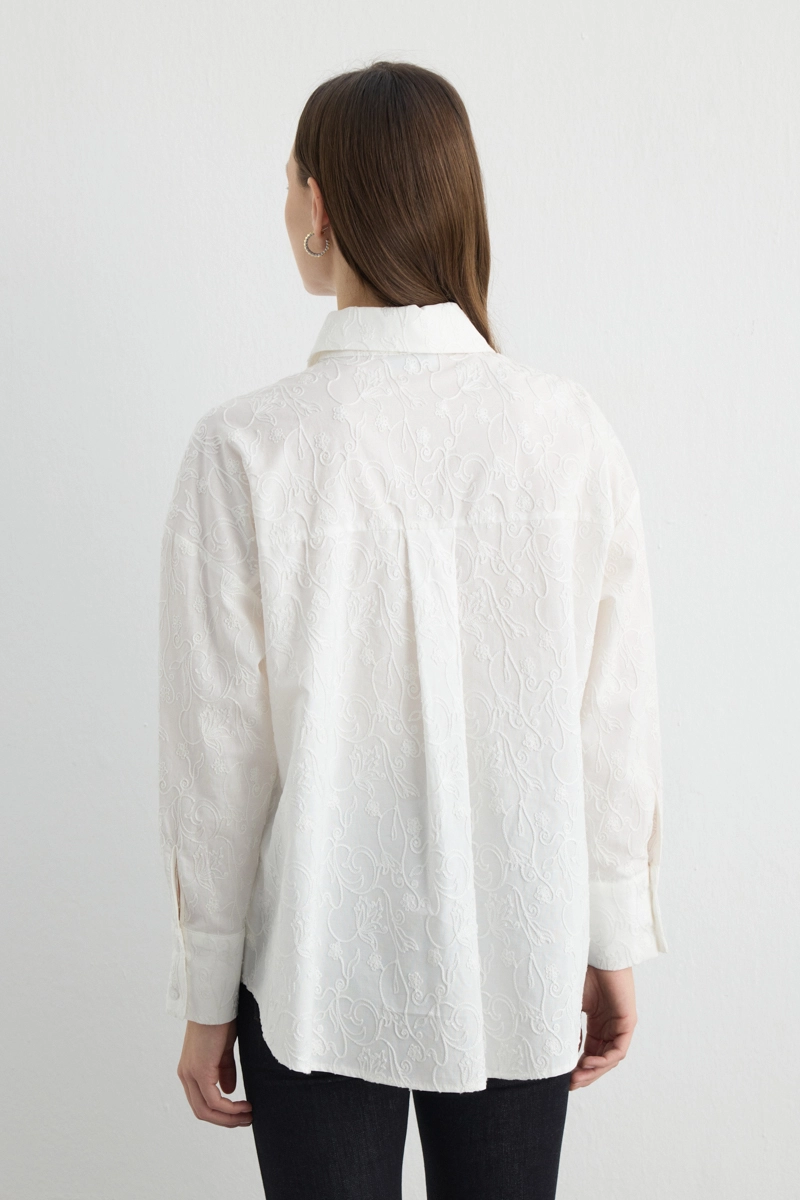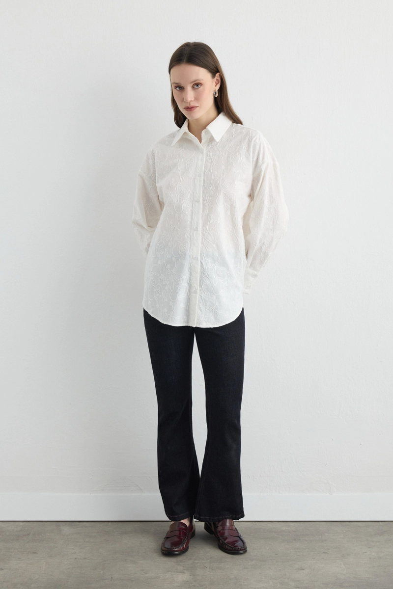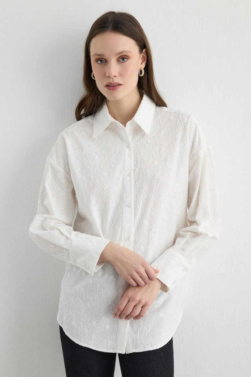Nakış detayları sofistike ve zarif bir görünüm katıyor. Rahat kesim konforlu ve gündelik şıklık sunuyor. Beyaz tonları her kombine uyum sağlıyor. Koton dokusu nefes alabilir ve hafif bir kullanım sağlıyor. Günlük ve iş kombinlerinde pratik bir tercih oluyor. Sade ve şık tasarımıyla farklı alt parçalarla uyum yakalıyor.