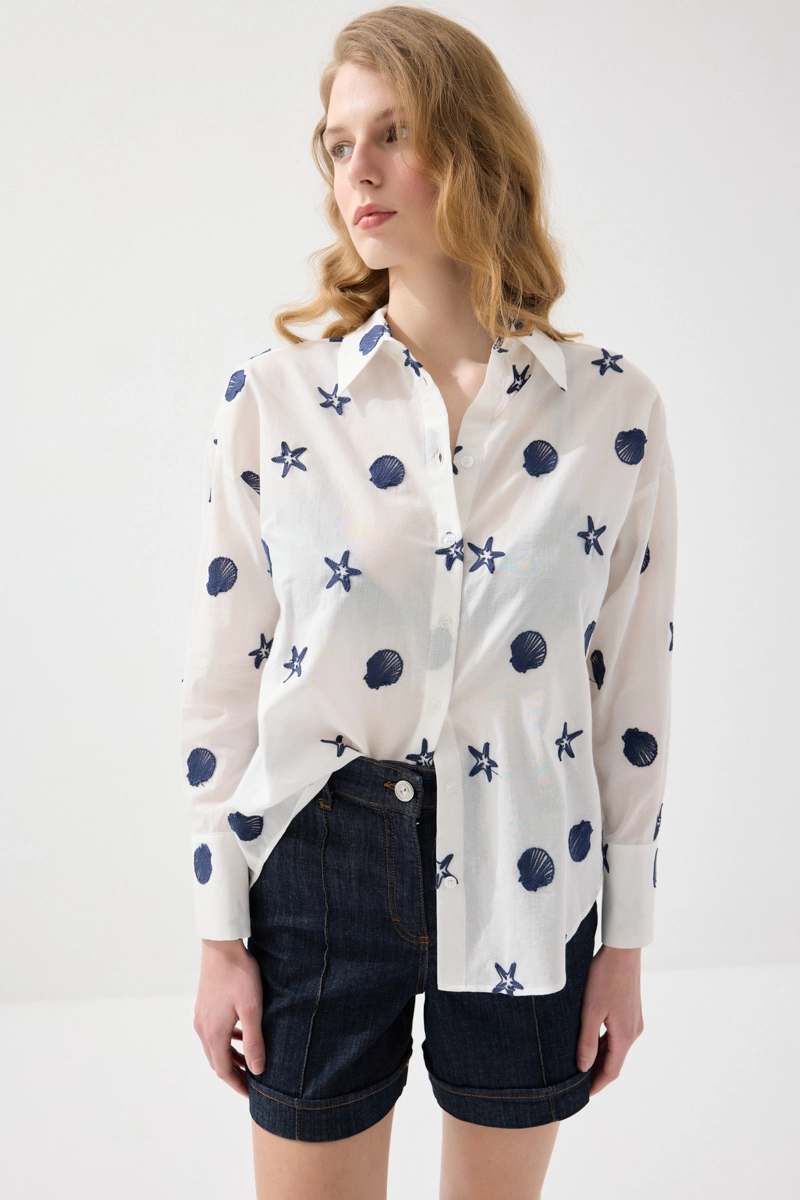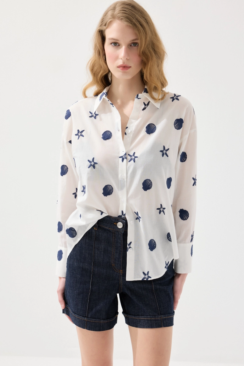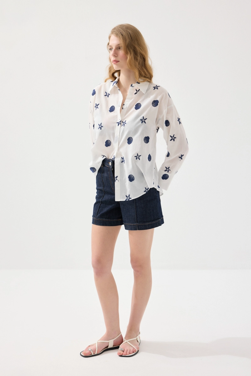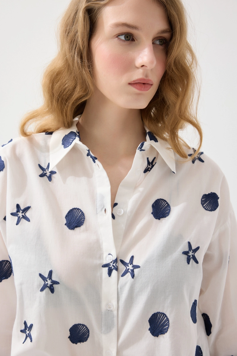 Şık nakış detaylarıyla zarif bir görünüm sunar. Rahat kesimi sayesinde gün boyu konfor sağlar. Pamuklu dokusu nefes alabilen bir yapı sunar. Beyaz tonu ile ferah ve klasik bir stil oluşturur. Hem günlük hem de şık kombinlerde tercih edilebilir.