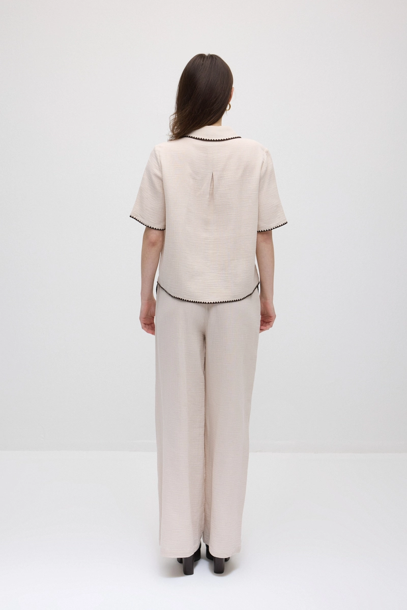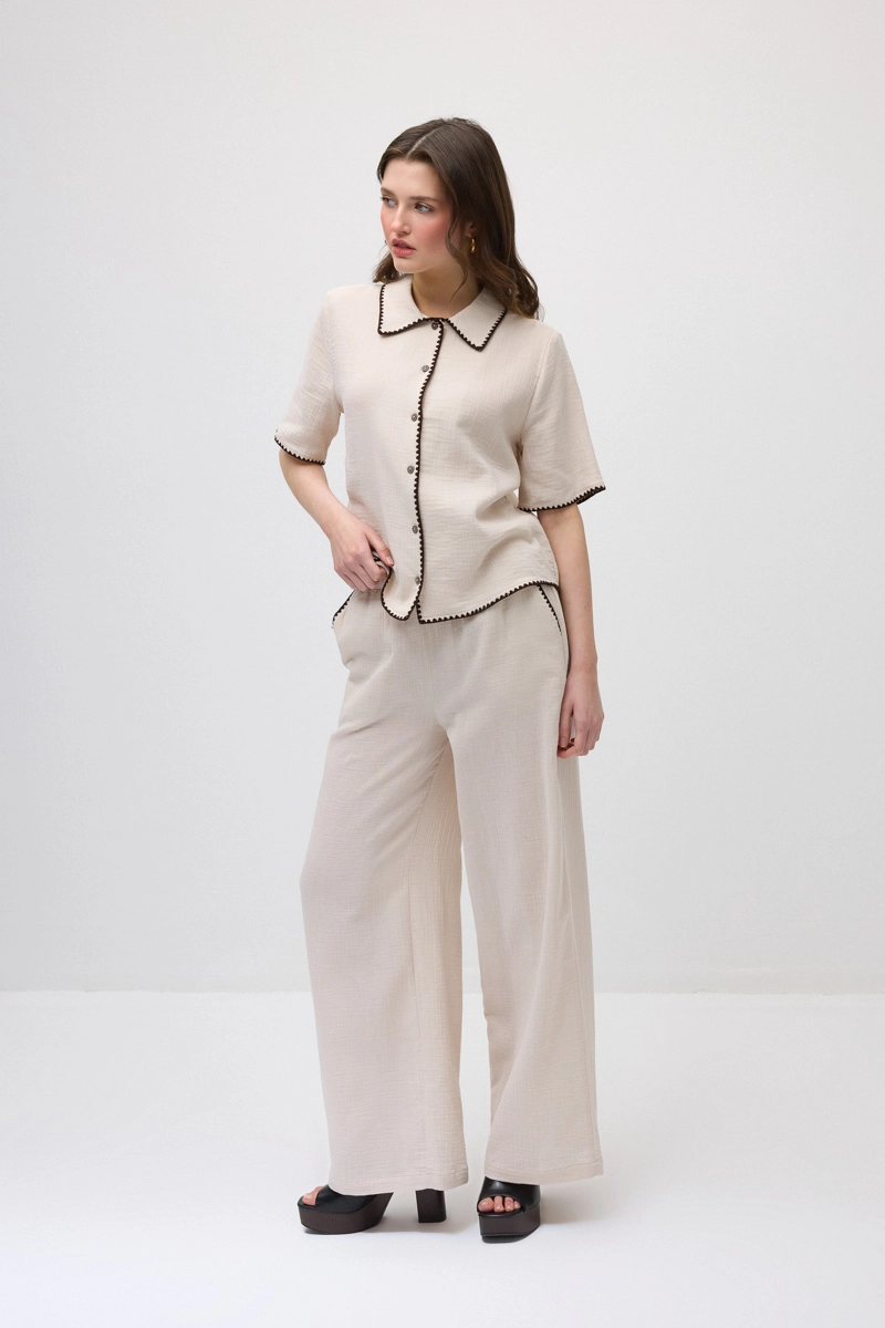Zarif nakış detaylarıyla öne çıkan tasarımı, sade ve şık bir görünüm sunar. Müslin pamuk kumaşı sayesinde hafif ve nefes alabilen bir yapı sağlar. Gün boyu konfor sunan rahat kesimi farklı kombinlerle kolayca uyum sağlar. Günlük stil ve yaz kombinlerinde tercih edilebilecek zarif bir alternatiftir. Doğal dokusuyla modern ve rahat bir stil oluşturur.