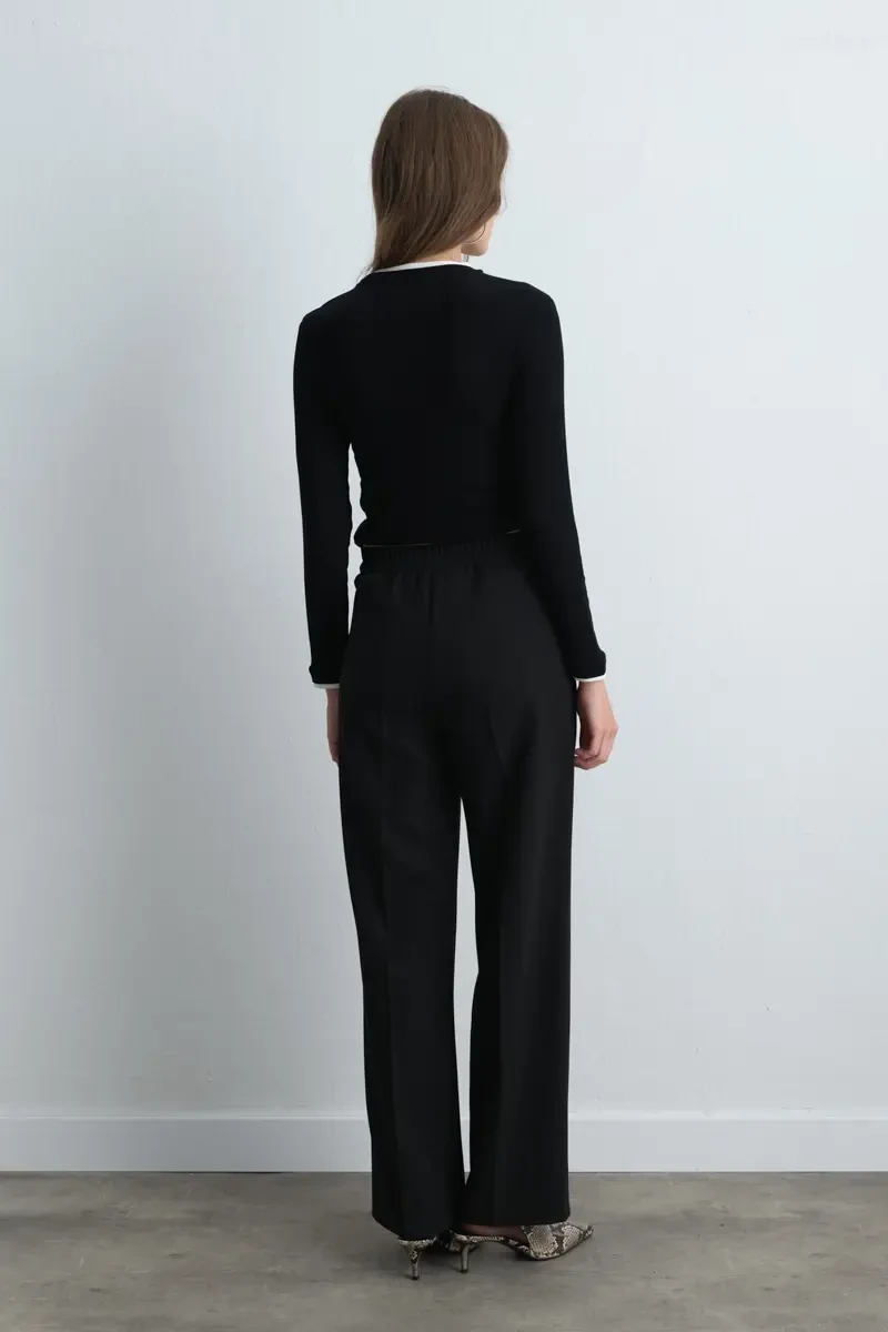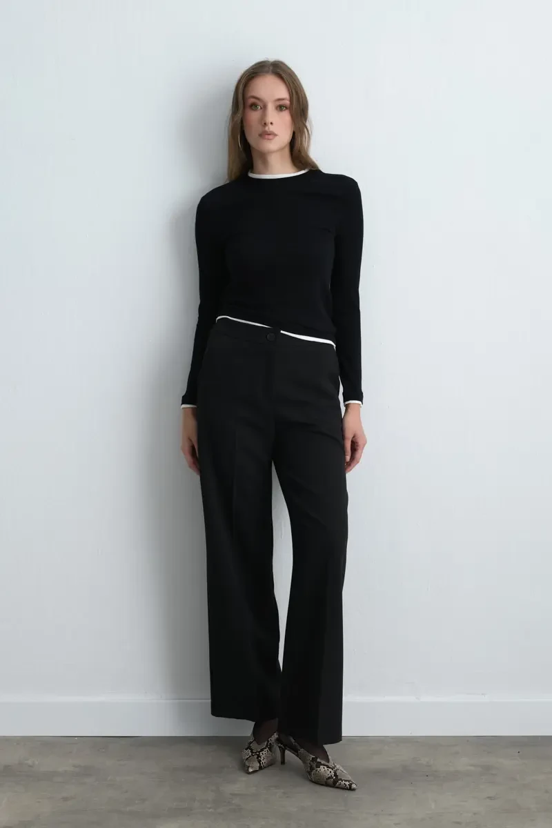 Rahat kesimi ve dökümlü kumaşıyla öne çıkan bu palazzo pantolon, siyah rengi sayesinde her stile uyum sağlar. Hem gündüz hem de akşam kombinlerinde tercih edebileceğiniz şık bir seçenektir. Yüksek bel tasarımı bacak boyunu uzun gösterirken, konforlu yapısıyla gün boyu rahatlık sunar. Bluz, gömlek ve ceketlerle kombinlenmeye uygundur.