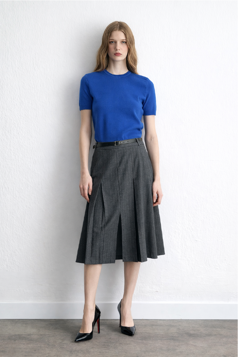 Gri tonu her stile uyum sağlayan klasik bir şıklık sunar. Pilikaşe detayı hareketli ve zarif bir siluet kazandırır. Kemerli form bel hattını vurgular. Kaşe dokusu sıcak ve konforlu bir kullanım sağlar. Günlük veya ofis kombinlerinde şıklığı tamamlayan modern bir parçadır.