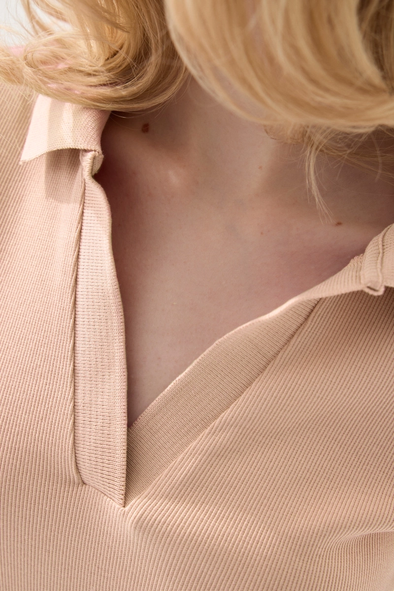 Polo Yaka Kaşkorse Tshirt - Pudra