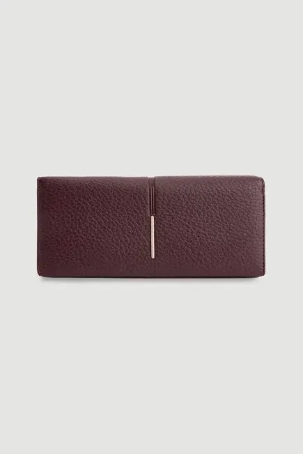 This black clutch wallet combines style and functionality with its metal-accented design for a modern appearance. Its spacious interior allows organized storage of cards and cash, while the compact size ensures practical use in a bag. A chic accessory that complements both daily and special occasion outfits.