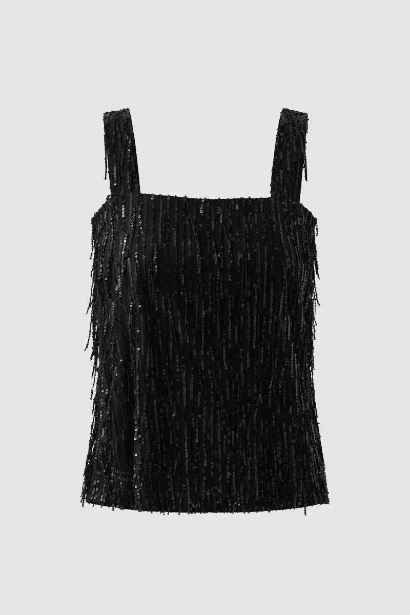 Pul payet detaylarıyla ışıltılı bir görünüm sunan bu abiye atlet bluz, özel davetlerde şık kombinler oluşturmak için idealdir. Hafif yapısı sayesinde konforlu bir kullanım sunar. Modern kesimi ile vücuda uyum sağlayarak zarif bir duruş sergiler. Etek ve pantolonlarla kolayca kombinlenebilir. Stilinize iddialı bir dokunuş katar.