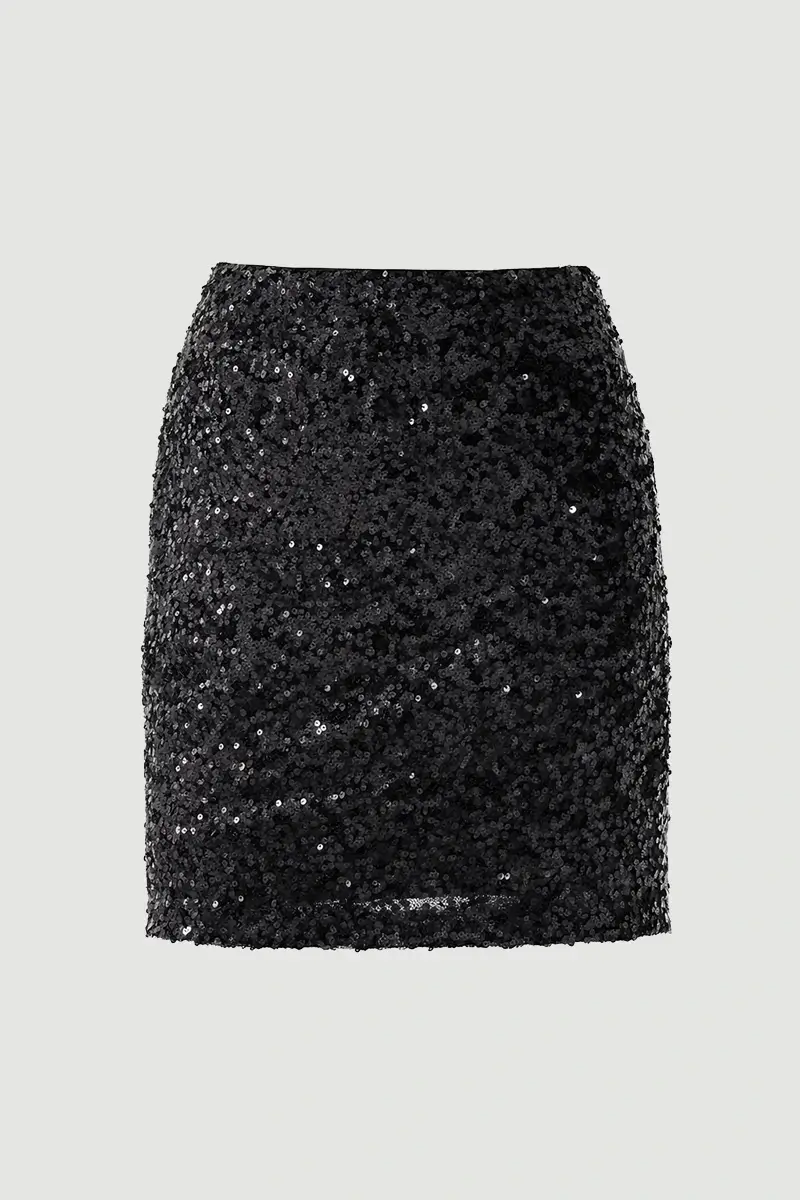Pul payet detaylarıyla ışıltılı bir görünüm sunar. Mini kesimi modern ve iddialı bir stil oluşturur. Siyah rengiyle zamansız bir şıklık sağlar. Özel gün ve gece kombinleri için ideal bir parçadır.