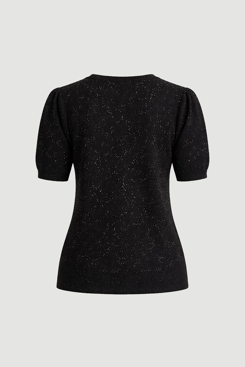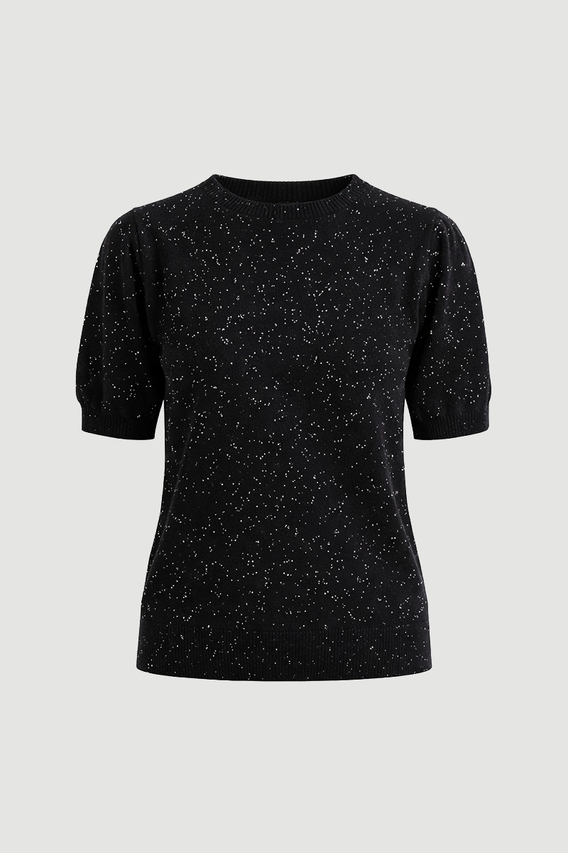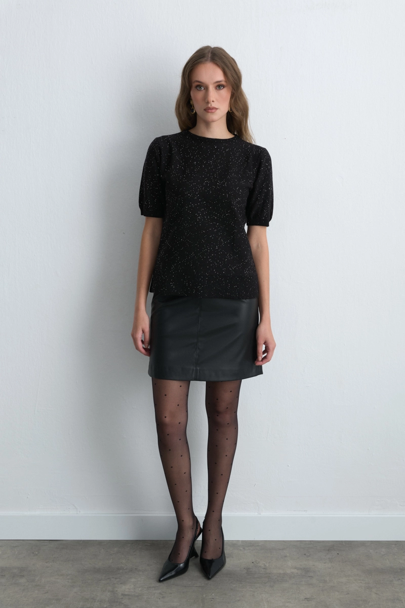 Işıltılı pullarıyla dikkat çeken kısa kollu triko bluz, sade bir parçayı anında şık bir görünüme dönüştürür. Günlük kullanımdan akşam buluşmalarına kadar farklı ortamlara uyum sağlar. Rahat kesimi ve modern havasıyla dolabınızın kurtarıcı parçalarından biridir.