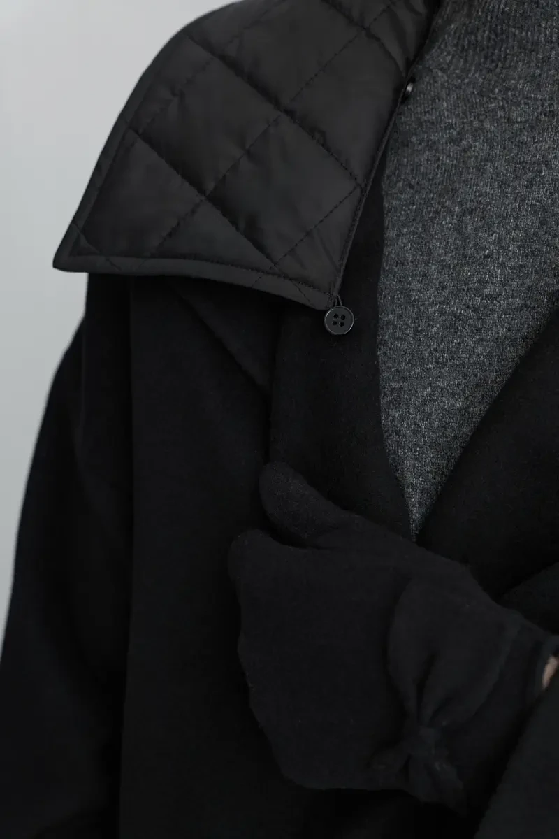 The wool texture provides a warm and comfortable feel. The quilted collar stands out as a modern detail. Easily adapts to any style with its black tone. Its long form creates an elegant and urban appearance. Offers style and functionality together during the winter season.