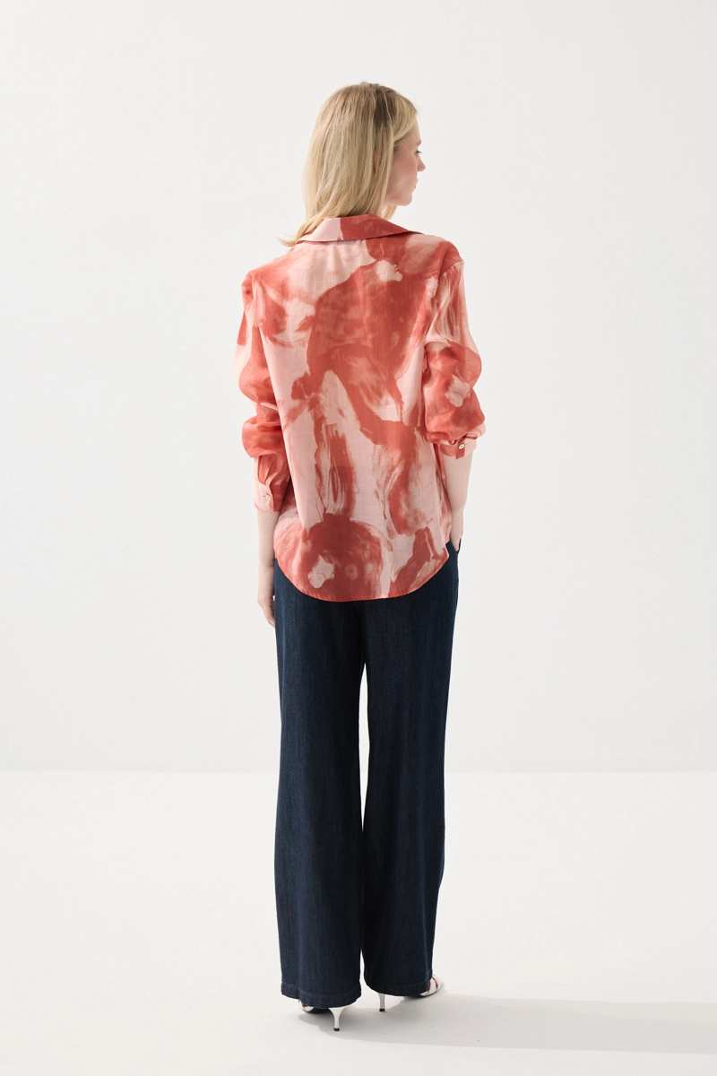 Desenli yapısıyla canlı ve hareketli bir stil sunar. Tencel kumaşı yumuşak ve akışkan bir kullanım sağlar. Rahat kesimi konforlu bir deneyim sunar. Günlük kombinlere enerji katar.