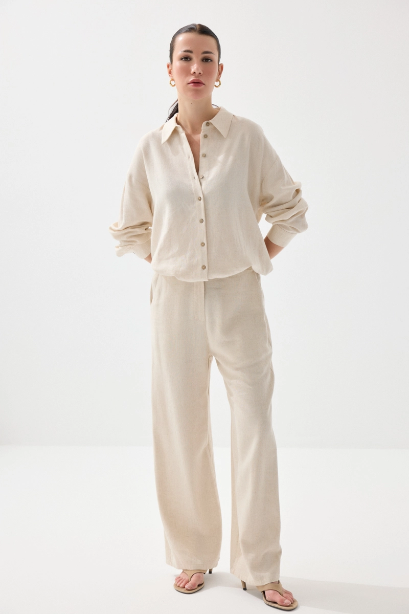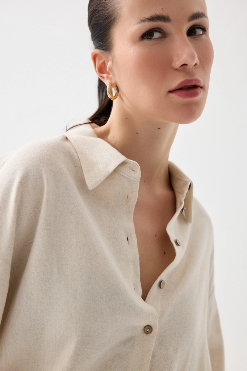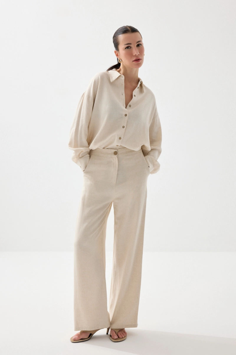 Doğal kumaşıyla hafif ve nefes alabilen bir kullanım sunar. Rahat kesimi sayesinde gün boyu konfor sağlar. Bej tonu ile sade ve zarif bir görünüm oluşturur. Günlük kombinlerde kolayca tercih edilebilir. Yaz stilinin vazgeçilmez parçalarından biridir.