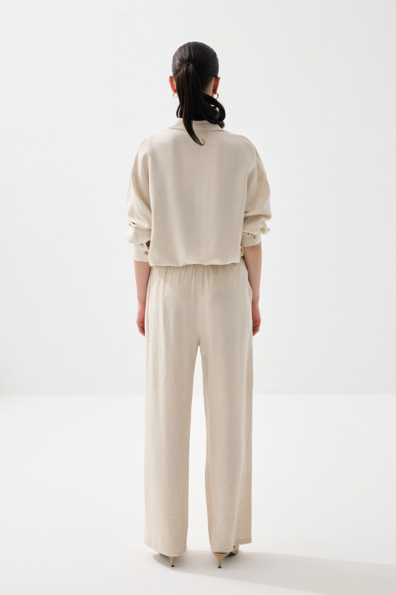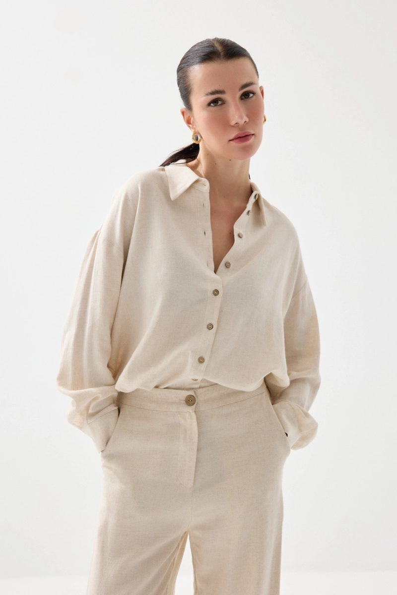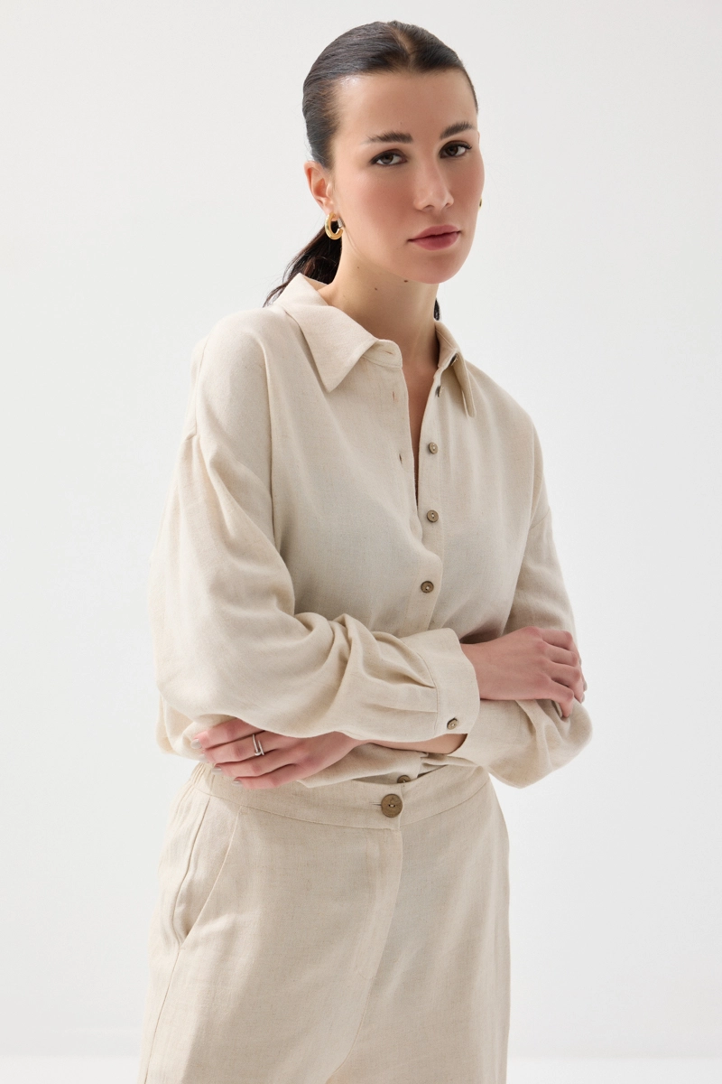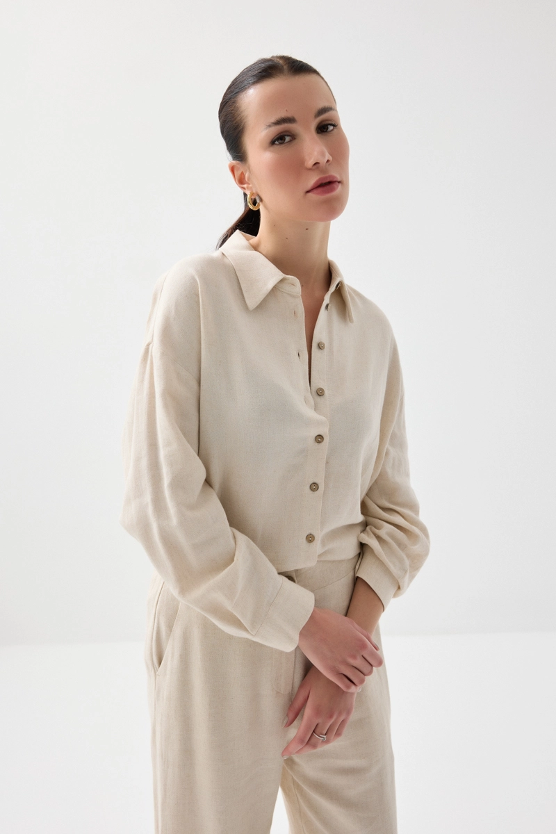 Doğal kumaşıyla hafif ve nefes alabilen bir kullanım sunar. Rahat kesimi sayesinde gün boyu konfor sağlar. Bej tonu ile sade ve zarif bir görünüm oluşturur. Günlük kombinlerde kolayca tercih edilebilir. Yaz stilinin vazgeçilmez parçalarından biridir.