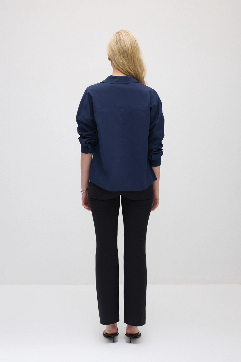 Pamuklu kumaşıyla hafif ve konforlu bir kullanım sunar. Rahat kesimi modern ve salaş bir stil oluşturur. Lacivert tonu şık ve zamansız bir görünüm sağlar. Günlük kombinlerde kolayca kullanılabilir.