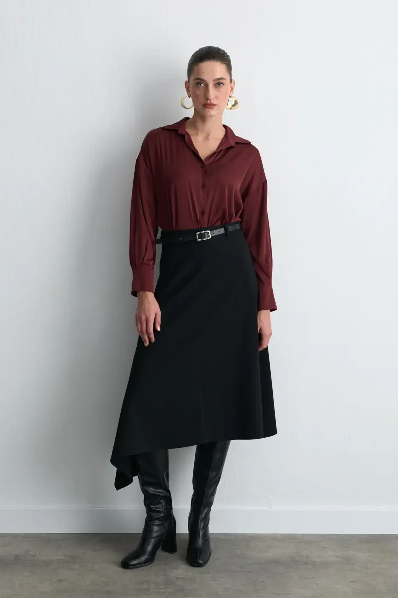 Bordo rengiyle güçlü ve sofistike bir görünüm kazandırır. Saten dokusu parlak ve zarif bir duruş sunar. Rahat kesimi gün boyu konfor sağlar. Düğme detayları klasik stile modern bir dokunuş ekler. Hem ofis hem de şehirli şıklıkta zamansız bir parça olarak öne çıkar.