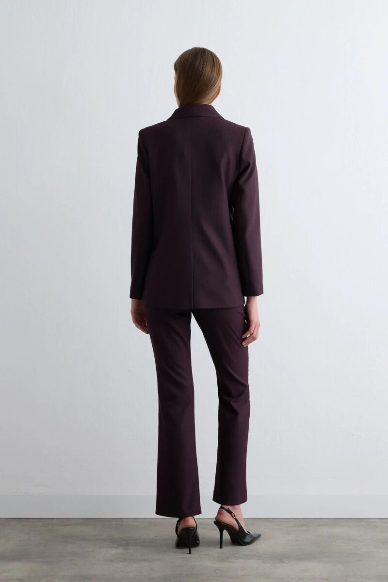 Krep Blazer Ceket & Boru Paça Pantolon - Kırmızı Takım