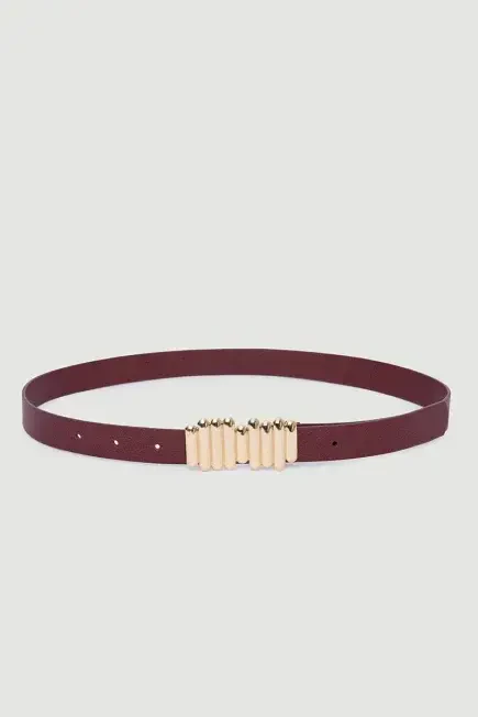 This belt, combining minimal design with a modern interpretation, features a bar-shaped buckle for a chic detail. Its brown tone allows easy pairing with many outfits. Enhances style in both dresses and pants combinations. A timeless piece that will remain in your wardrobe for years.