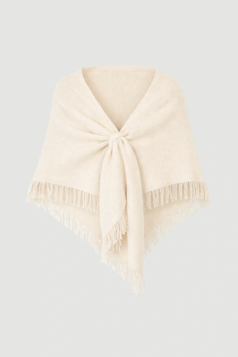 Ekru rengi sade ve zarif bir duruş kazandırır. Yün yapısıyla soğuk havalarda konfor sunar. Saçak detaylarıyla klasik şıklığı tamamlar. Günlük stilin yanında özel kombinlerde de rahatlıkla tercih edilebilir.