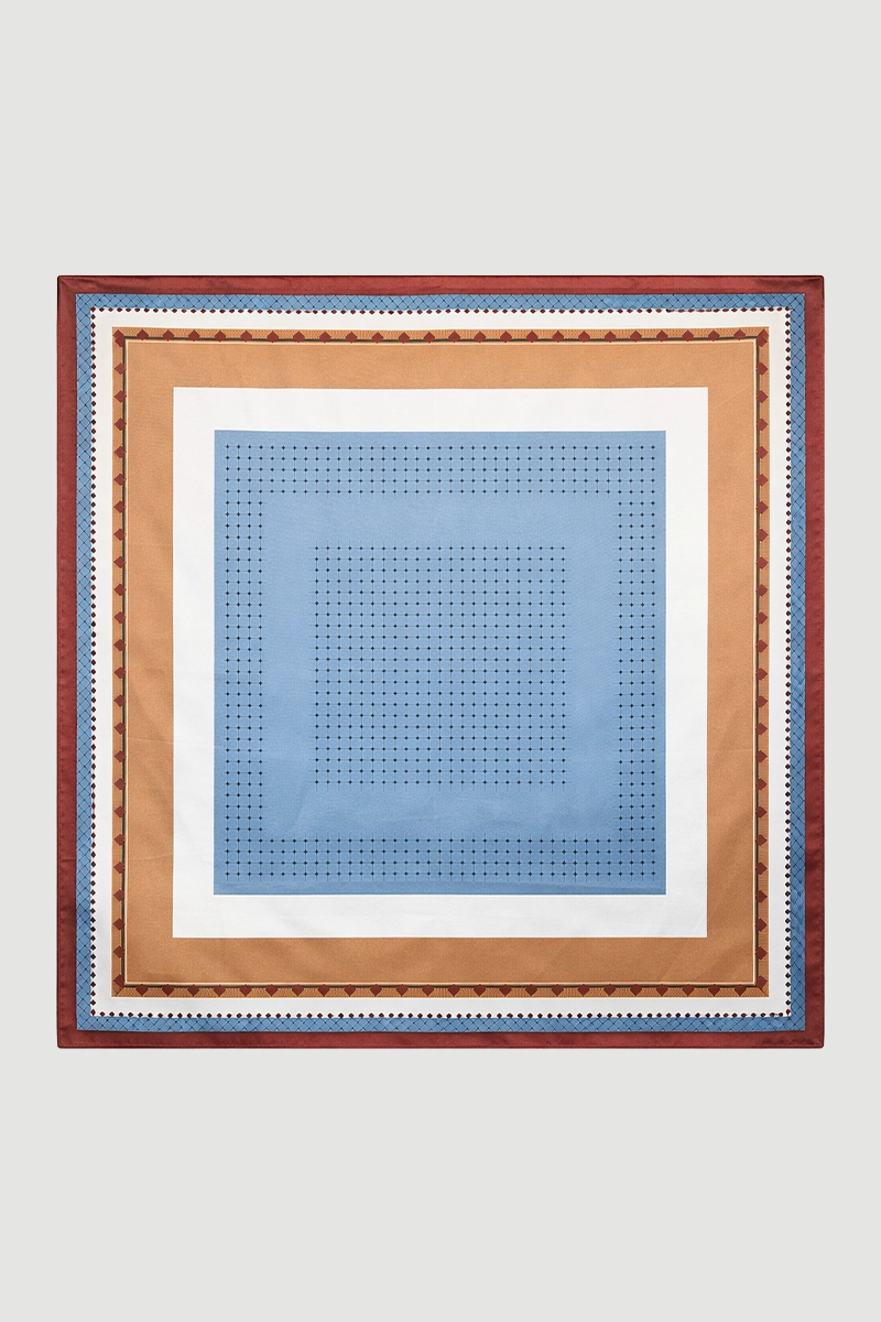 Mavi tonları ve şerit deseniyle dinamik bir görünüm sunar. Büyük boy tasarımı farklı bağlama stillerine imkân tanır. Günlük kombinlere renkli bir dokunuş katar. Mevsim geçişlerinde şık bir tamamlayıcıdır.
