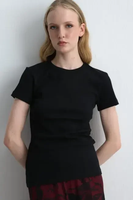 With its natural brown tone and basic design, the short-sleeved cotton T-shirt adapts to any style, making it a practical and comfortable addition to your wardrobe. Provides comfortable wear for daily use.