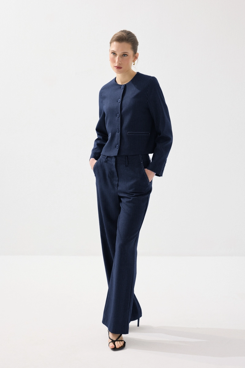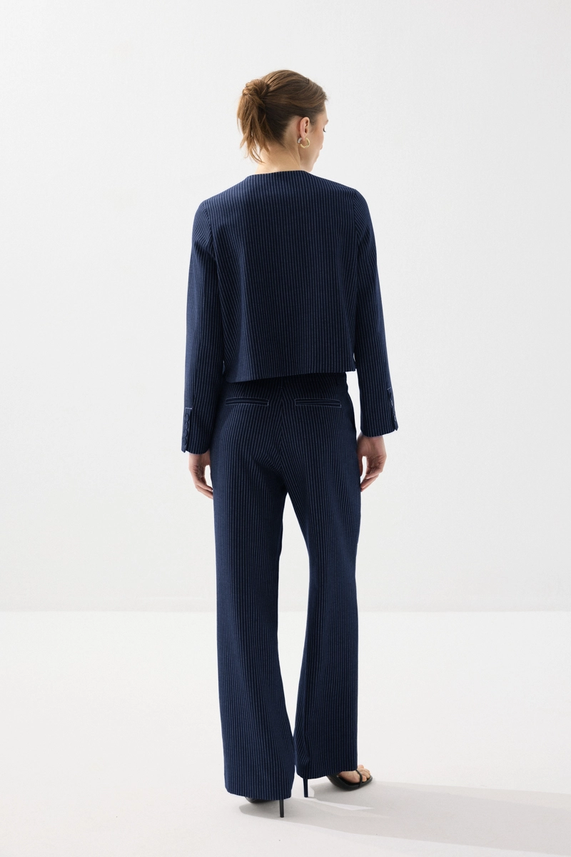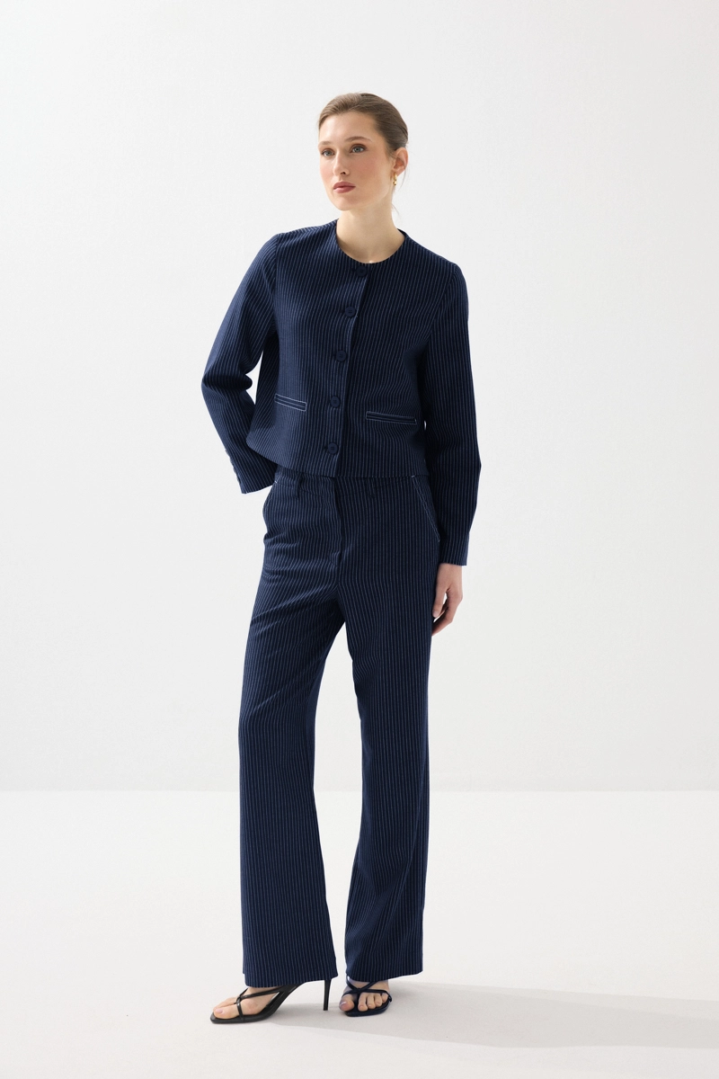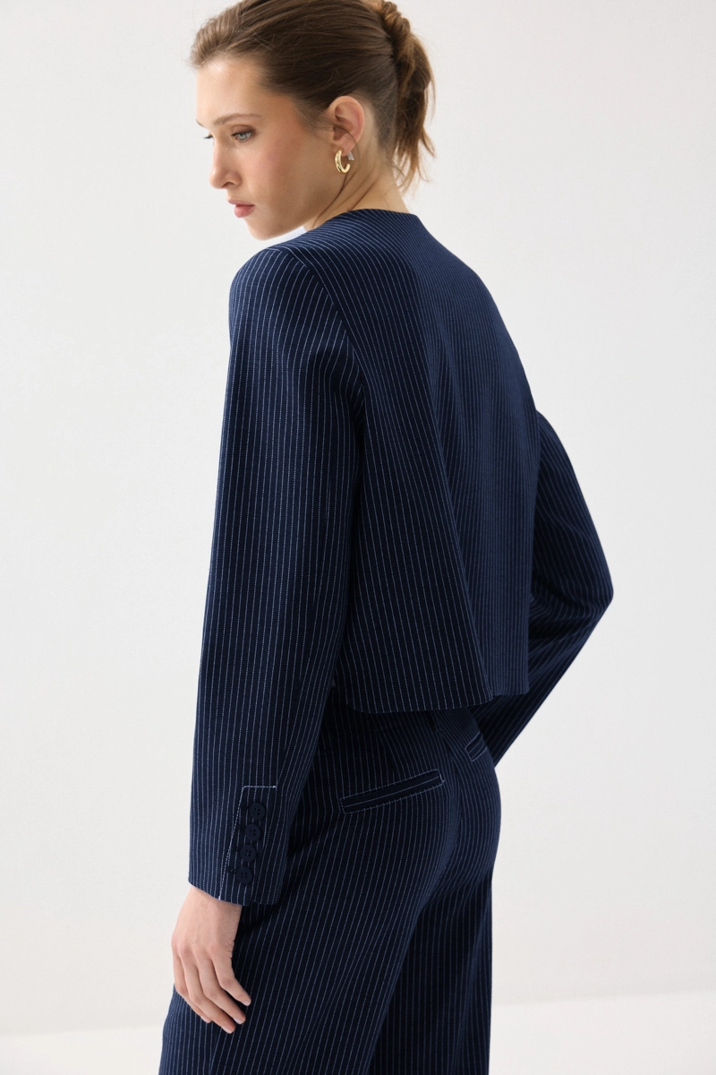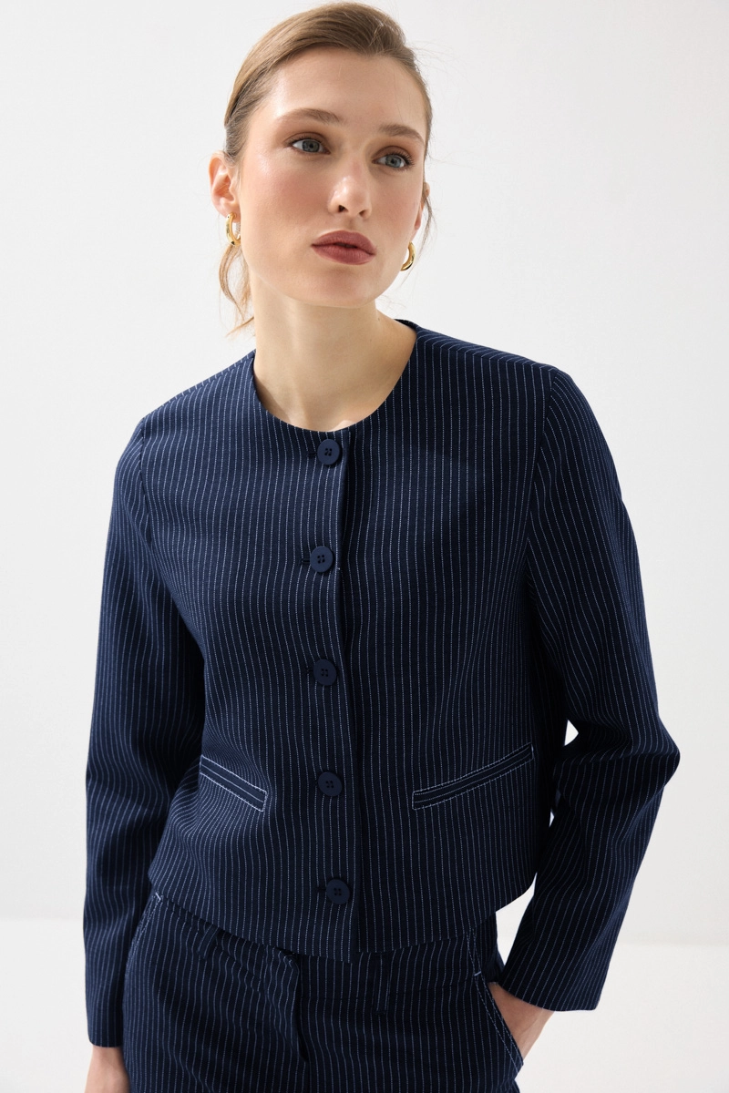 Viskon keten karışımlı kumaşıyla nefes alabilen ve hafif bir kullanım sunan ceket, sıfır yaka ve çizgili tasarımıyla modern bir görünüm kazandırır. Lacivert rengiyle zamansız kombinler oluşturabilirsiniz. Günlük ve ofis stiline kolayca uyum sağlar. Şık ve fonksiyonel bir parçadır. Rahatlık ve stil bir arada sunulur.