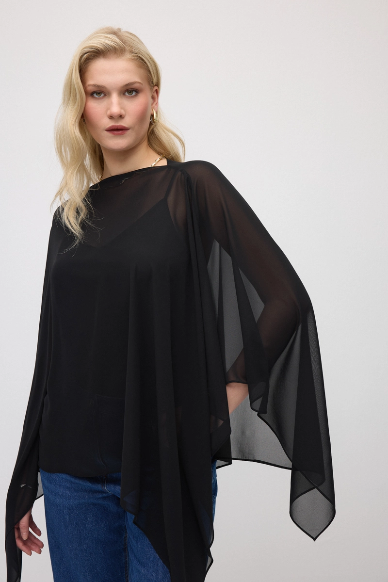 Hafif şifon dokusuyla zarif bir görünüm sunar. Akışkan yapısı kombinlere hareket kazandırır. Siyah rengiyle şık ve sofistike bir stil oluşturur. Özel davetlerde ve şık kombinlerde tamamlayıcı bir parçadır.
