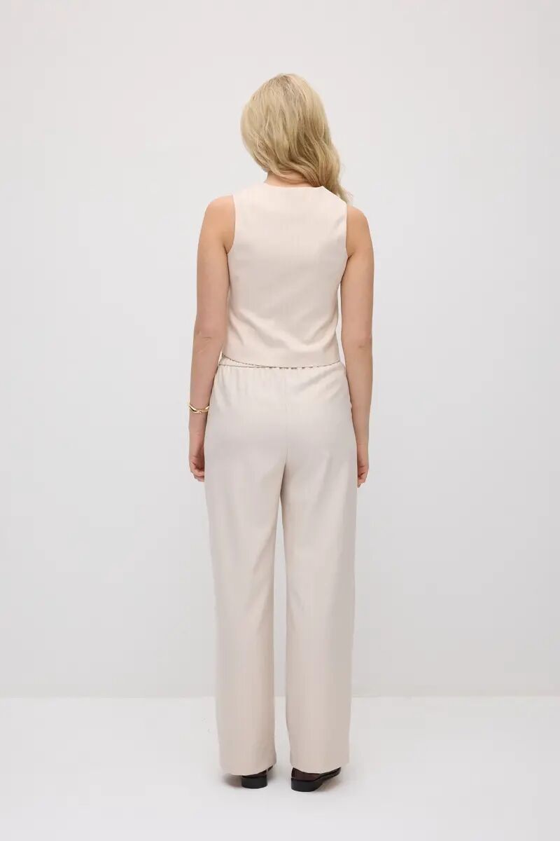 Silik Çizgili Klasik Yelek & Bol Paça Kumaş Pantolon Takım - Pudra