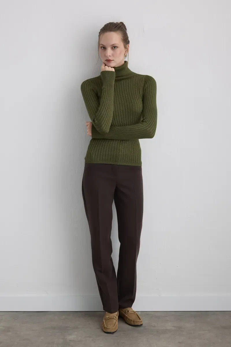 Natürel tonun asaletiyle parlayan bir görünüm sunuyor. Işıltılı triko dokusu modern bir etki yaratırken, balıkçı yaka kesimi zarif bir duruş sağlıyor. Soğuk günlerde hem konfor hem stil bir arada.
