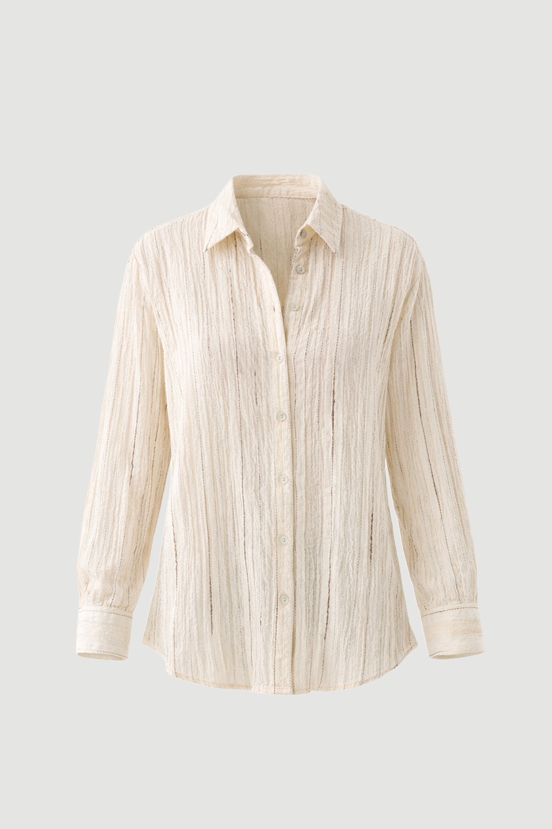 Simli çizgili dokusuyla ışıltılı ve zarif bir görünüm sunan bu müslin koton gömlek, hafif yapısıyla gün boyu konfor sağlar. Nefes alabilen kumaşı sayesinde ferah bir kullanım sunar. Şık ve dikkat çekici tasarımı ile hem günlük hem de özel kombinlerde tercih edilebilir. Yumuşak dokusu ciltte hoş bir his bırakır. Stilinize zarif bir ışıltı katar.
