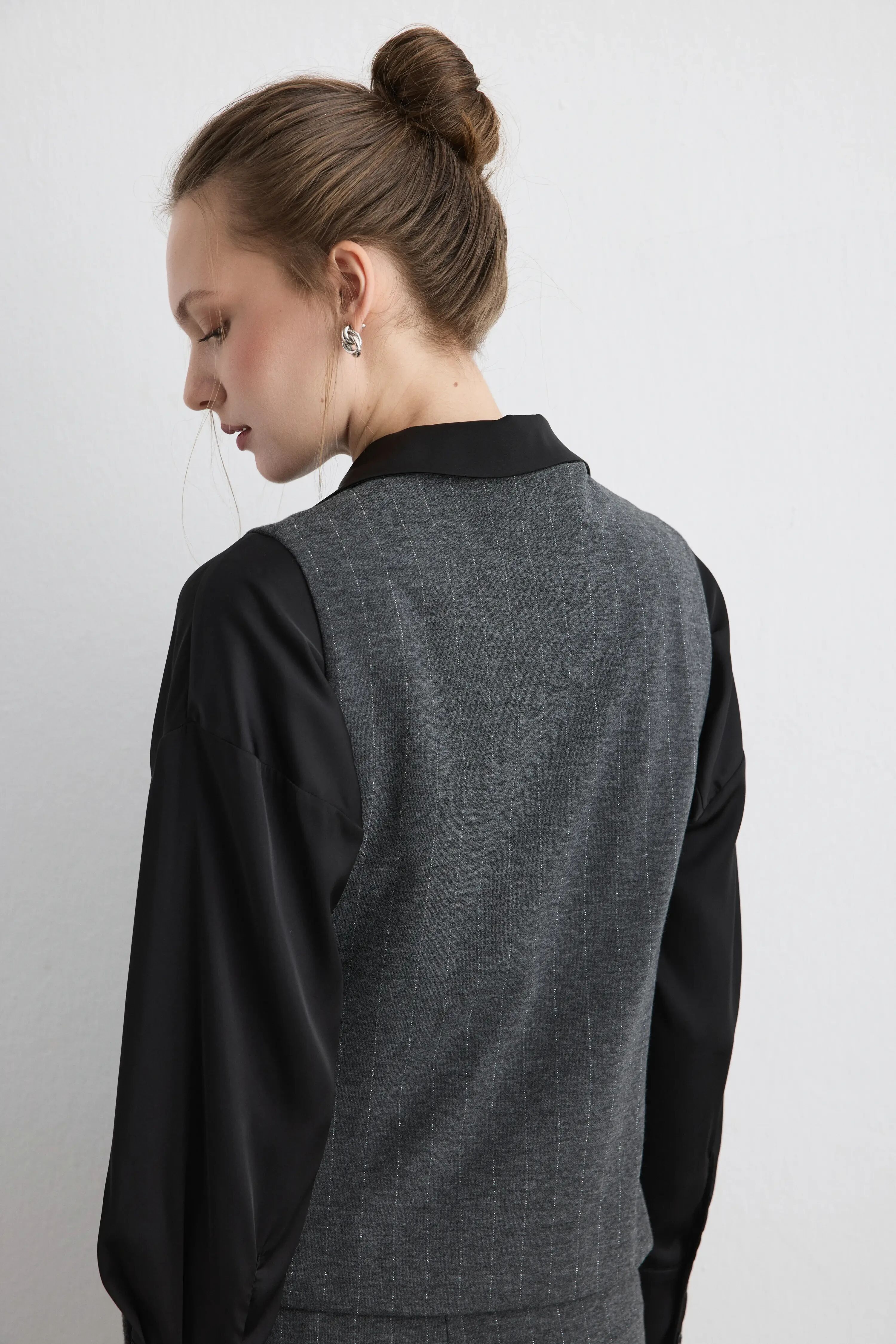 Simli Çizgili Örme Yelek & Pantolon - Gri Takım