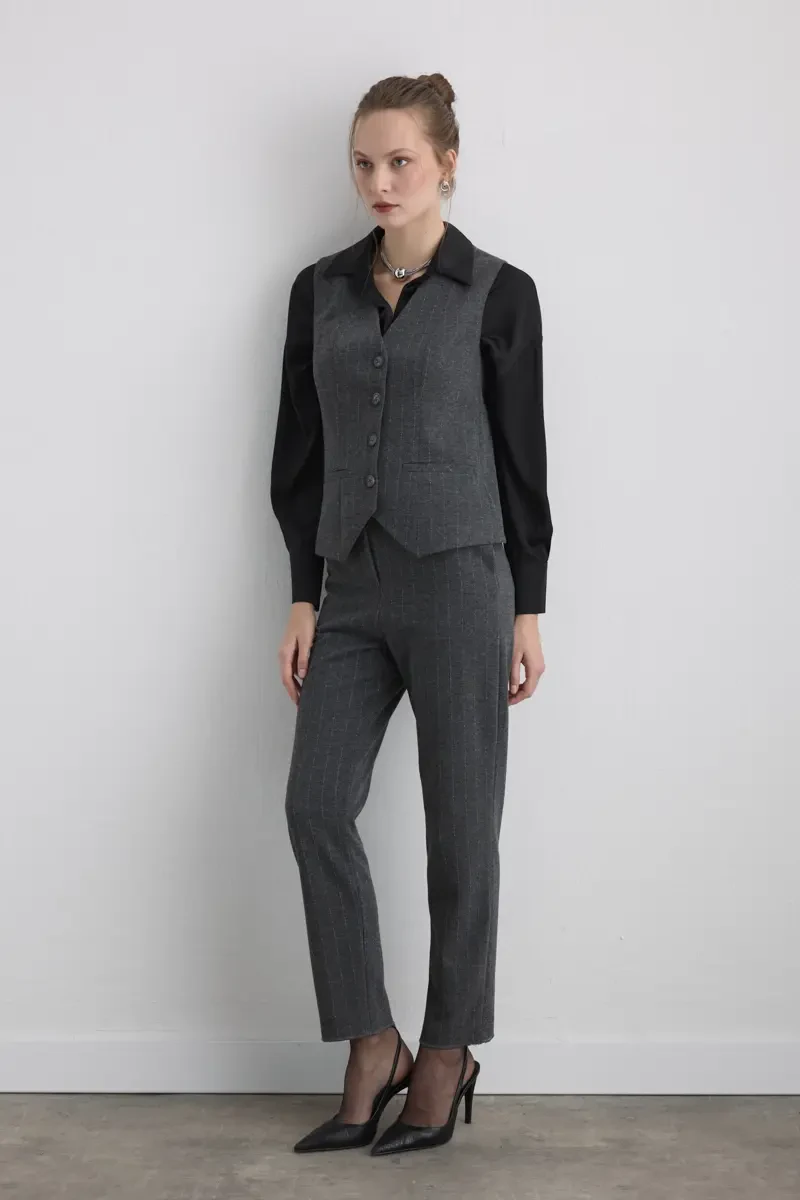 Simli çizgiler, sıradan parçaları hareketlendiriyor. Hafif ve yumuşak dokusu rahat kullanım sağlıyor. Farklı üstlerle modern kombinler oluşturur.