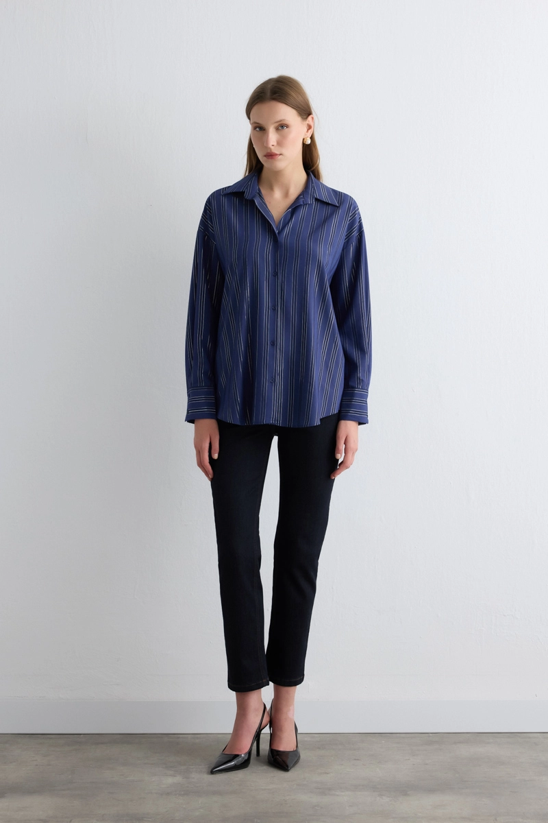 Işıltılı detayları sofistike bir görünüm kazandırır. Lacivert tonu güçlü bir duruş sunar. Rahat kesimi hareket özgürlüğü verir. Katmanlı kombinlerde farklı bir şıklık sağlar. Hem spor hem klasik stile uyarlanabilir.