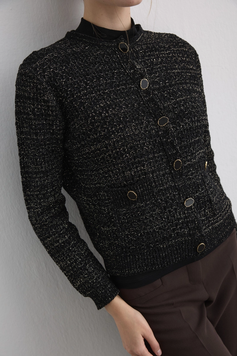 Sparkly Chenille Knit Cardigan Black