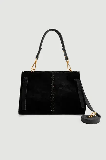 The brown suede bag, combining retro and modern details, stands out with its studded design. Its spacious interior and sturdy straps make it ideal for daily use. The suede texture and warm brown tone add a sophisticated touch to your outfits while being comfortable in any season.